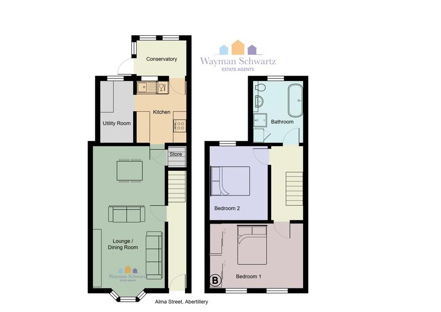 Located in Alma Street in Abertillery, this bay fronted mid-terraced house presents an excellent opportunity for a first time buyer. The property is offered chain free, making it an ideal choice for a swift and hassle-free purchase. Upon entering, you are welcomed into a spacious lounge/dining room, perfect for both relaxation and entertaining. The well-appointed kitchen, accompanied by a utility room, provides ample storage and functionality for all your culinary needs. The house features two generously sized bedrooms, offering a peaceful retreat for rest and relaxation. The bathroom is thoughtfully designed, complete with a separate shower, ensuring convenience for all residents. Outside, the small patio garden is accessed via the conservatory provides a charming outdoor space, ideal for enjoying a morning coffee or hosting a small gathering with friends and family. This property had the roof cleaned n 2025 and is offered for sale with no onward chain.