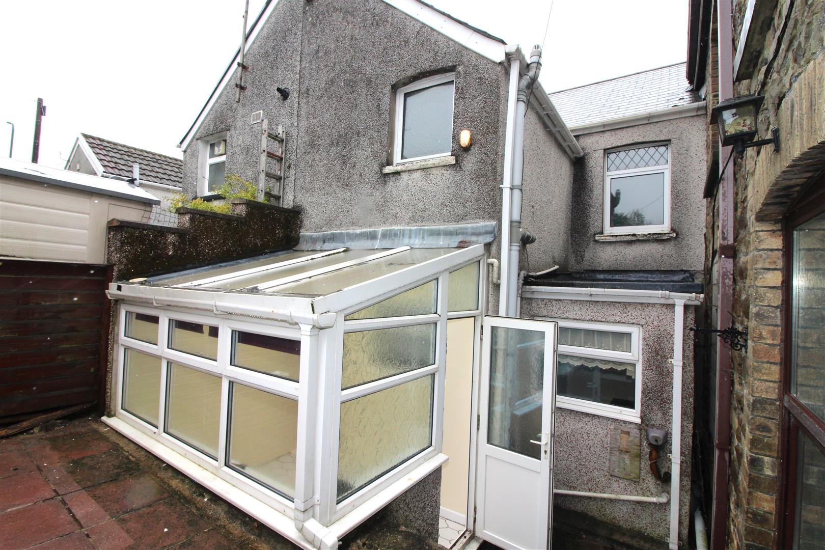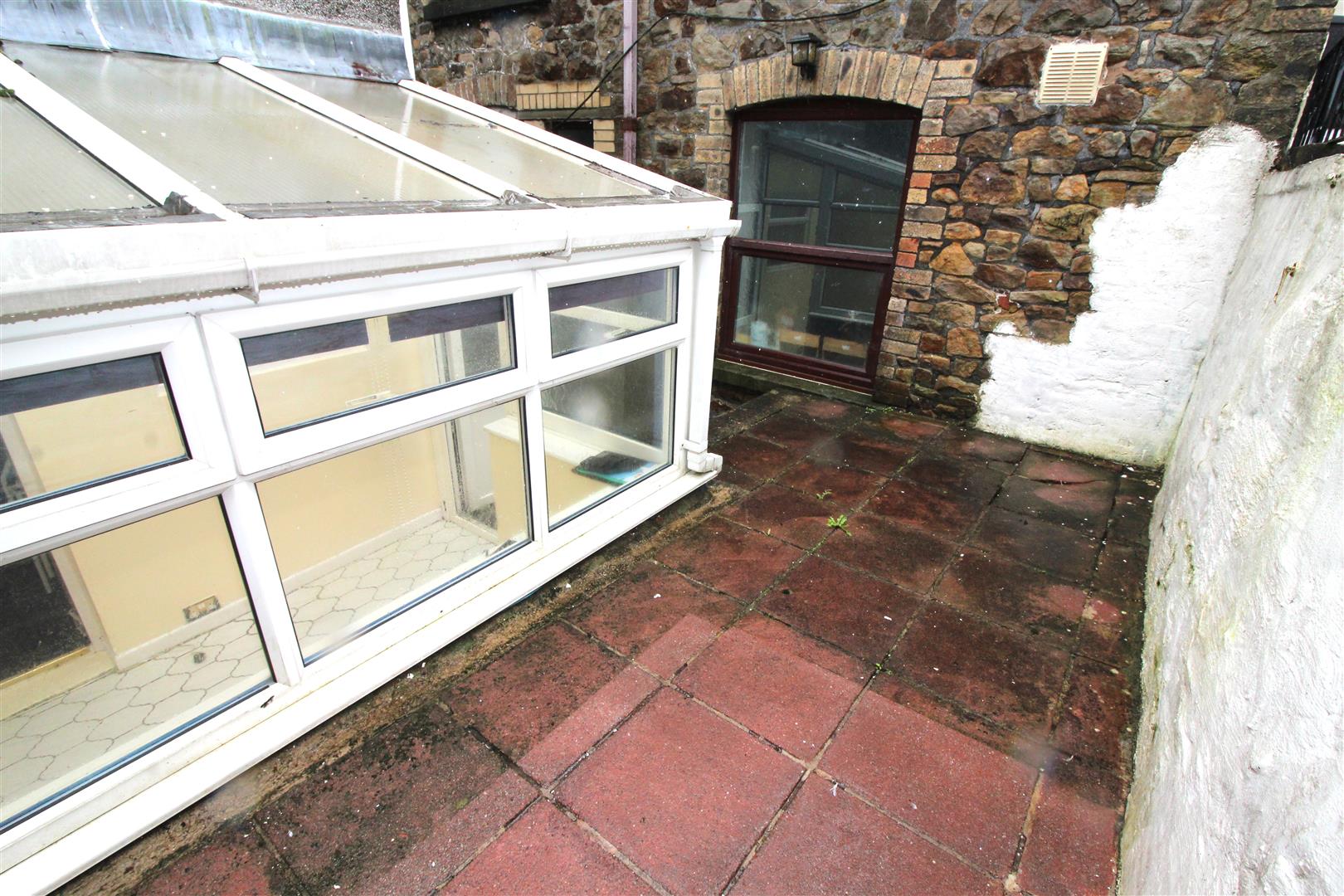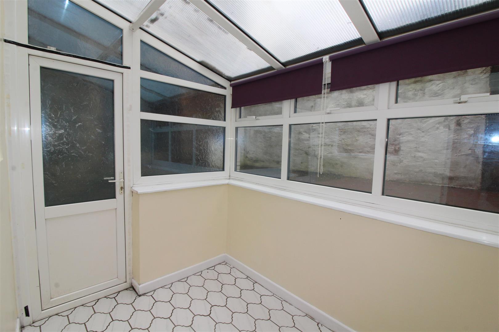 A brick built and double glazed room with poly carbonate roof, tiled flooring, double glazed door leading to rear garden.
