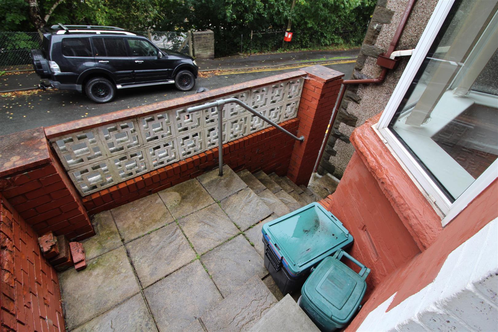 Steps leading up to small forecourt.