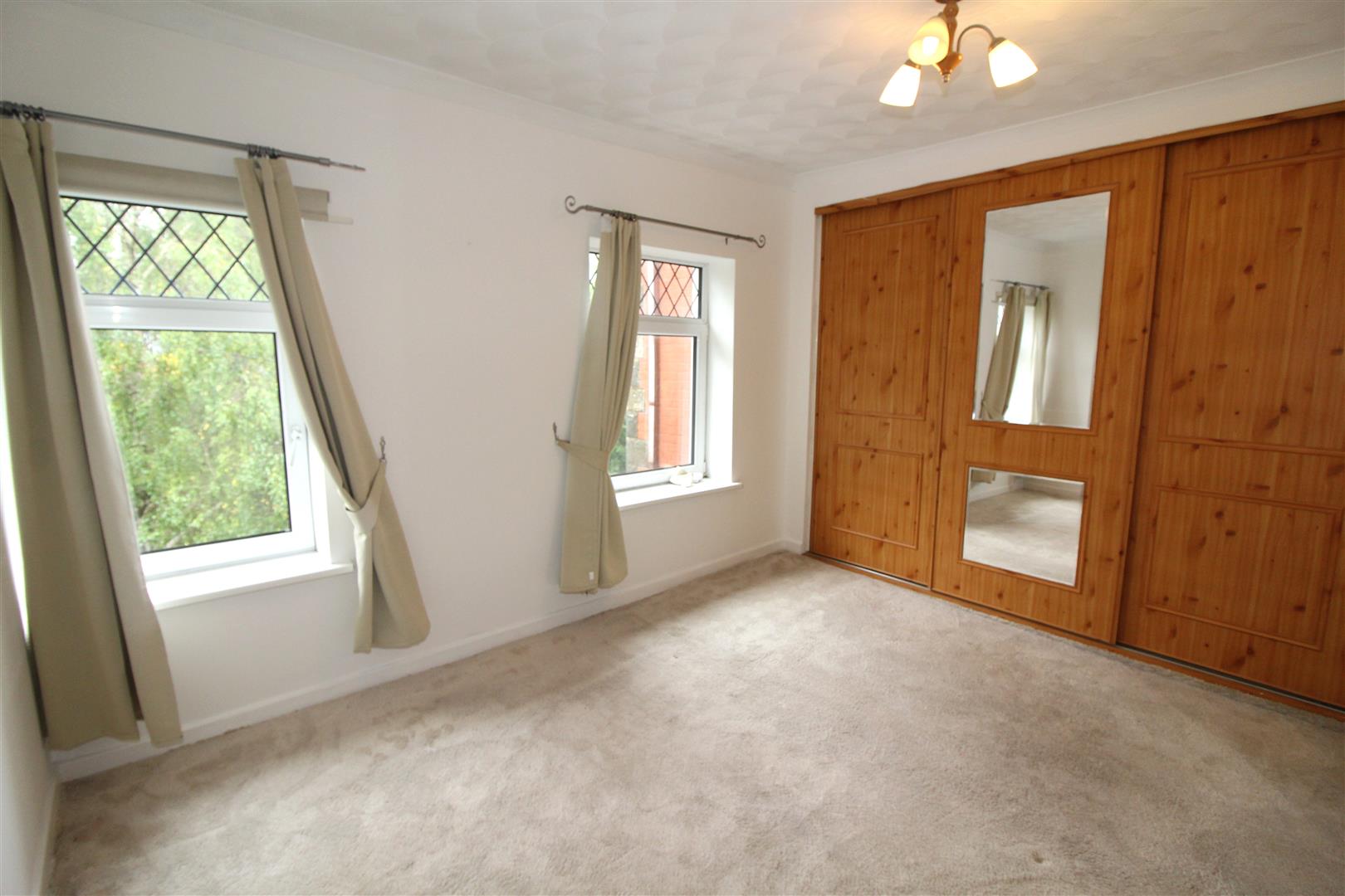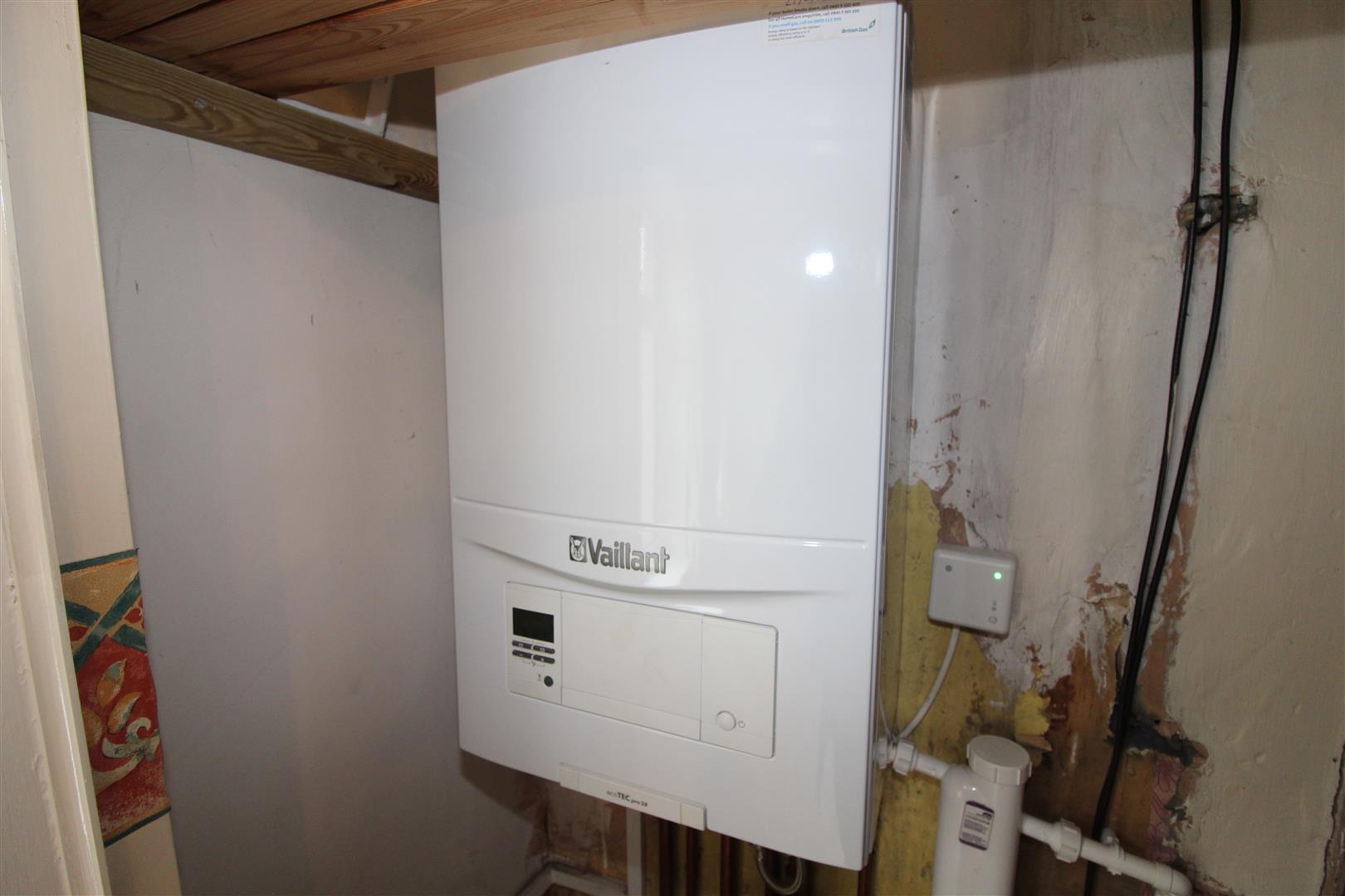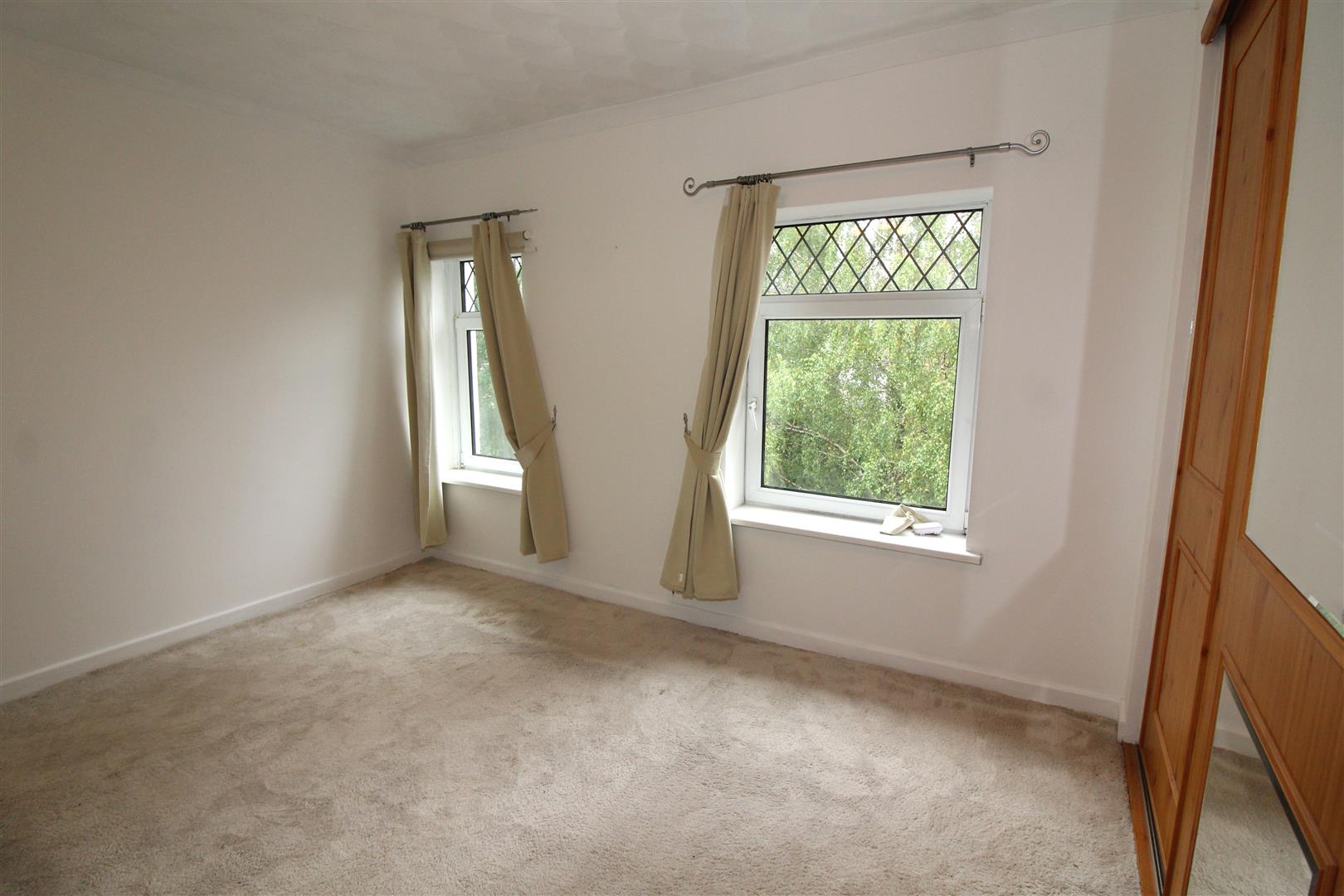 Two double glazed windows to front aspect, coved and textured finish to ceiling, painted finish to walls, built in wardrobe to one wall with storage and wall mounted gas central heating combination boiler, radiator.