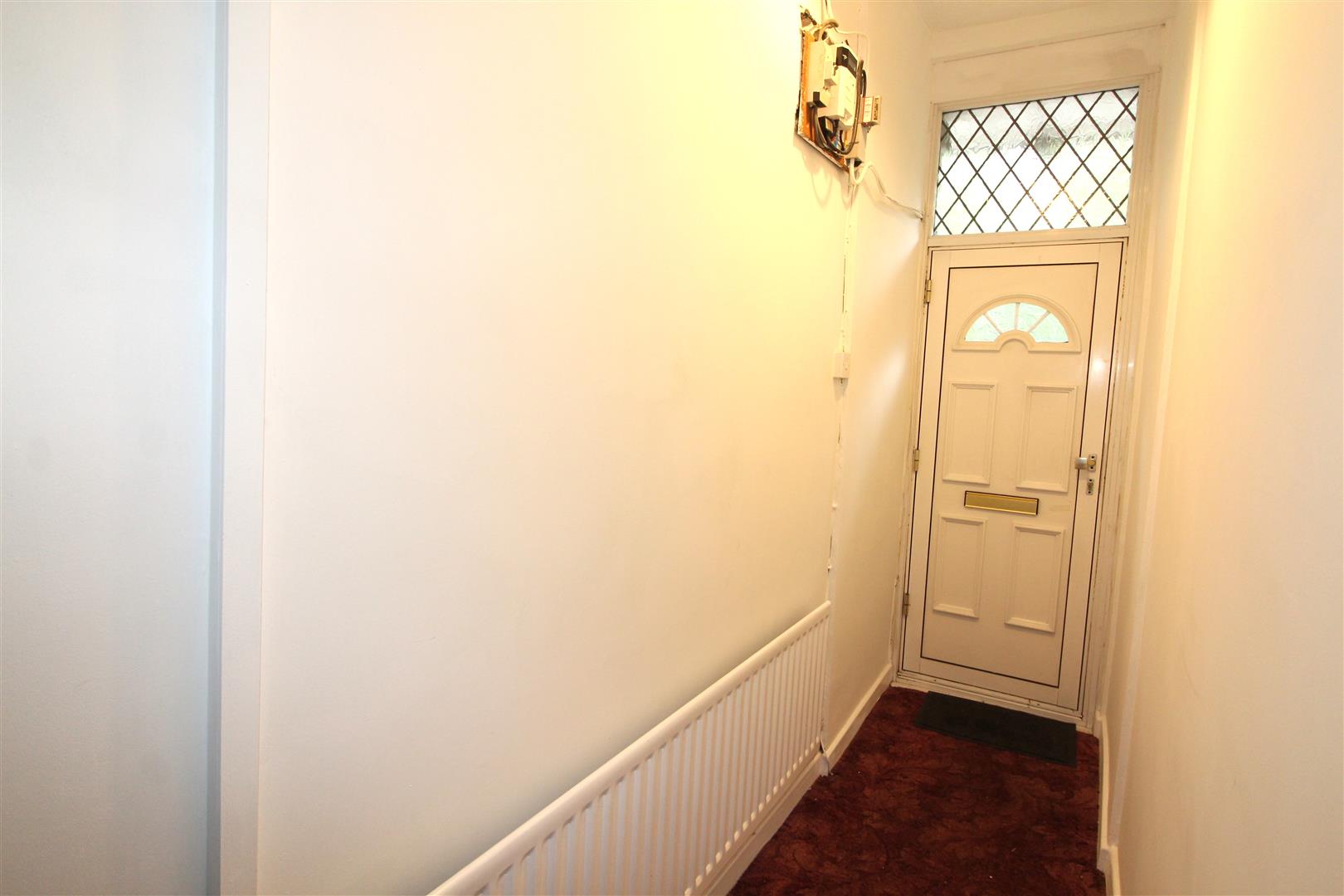 Entrance door, textured finish to ceiling, painted finish to walls, stairs lading to first floor accommodation, radiator.
