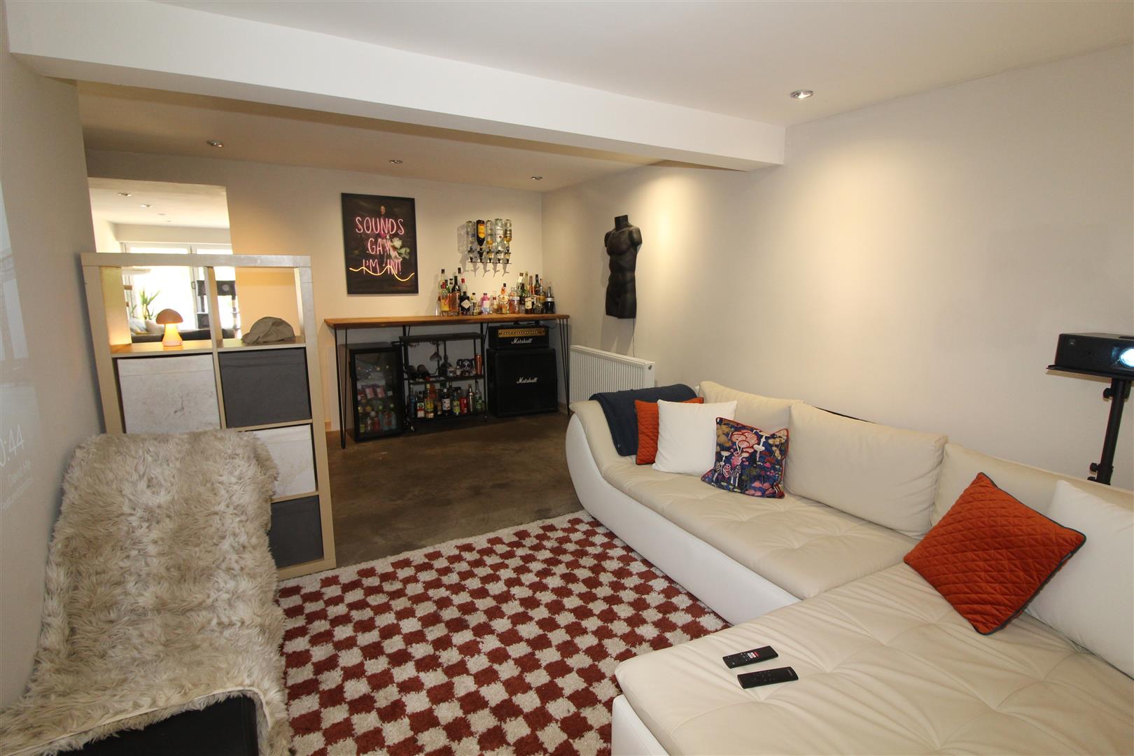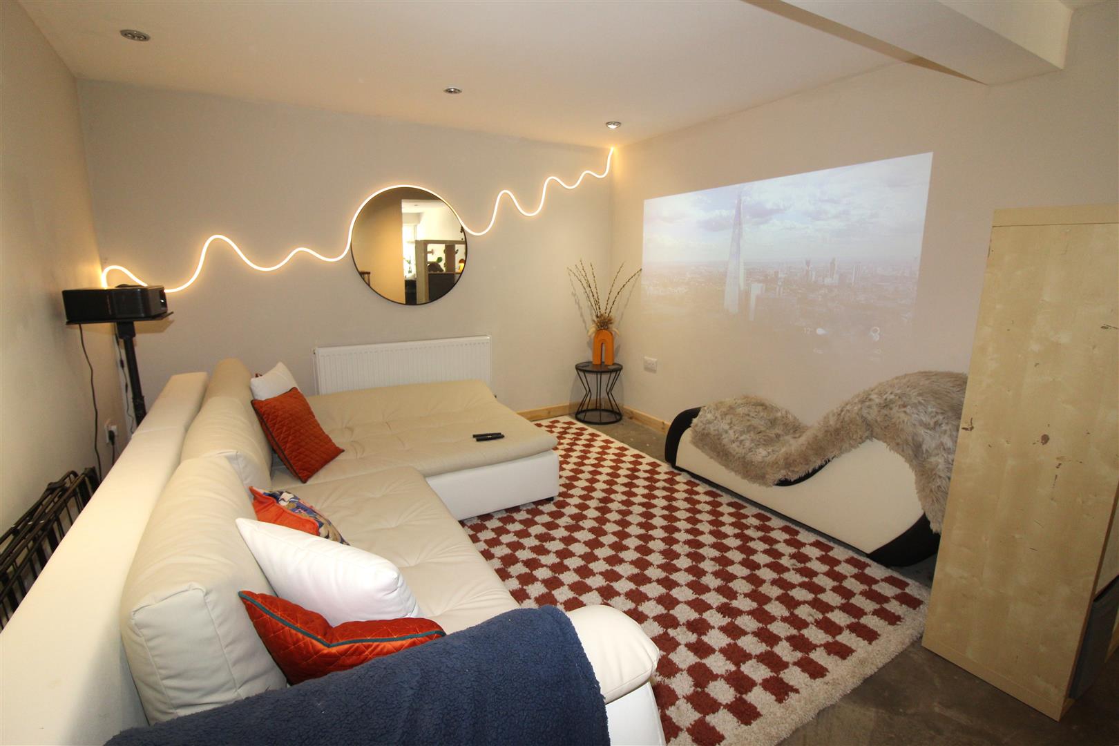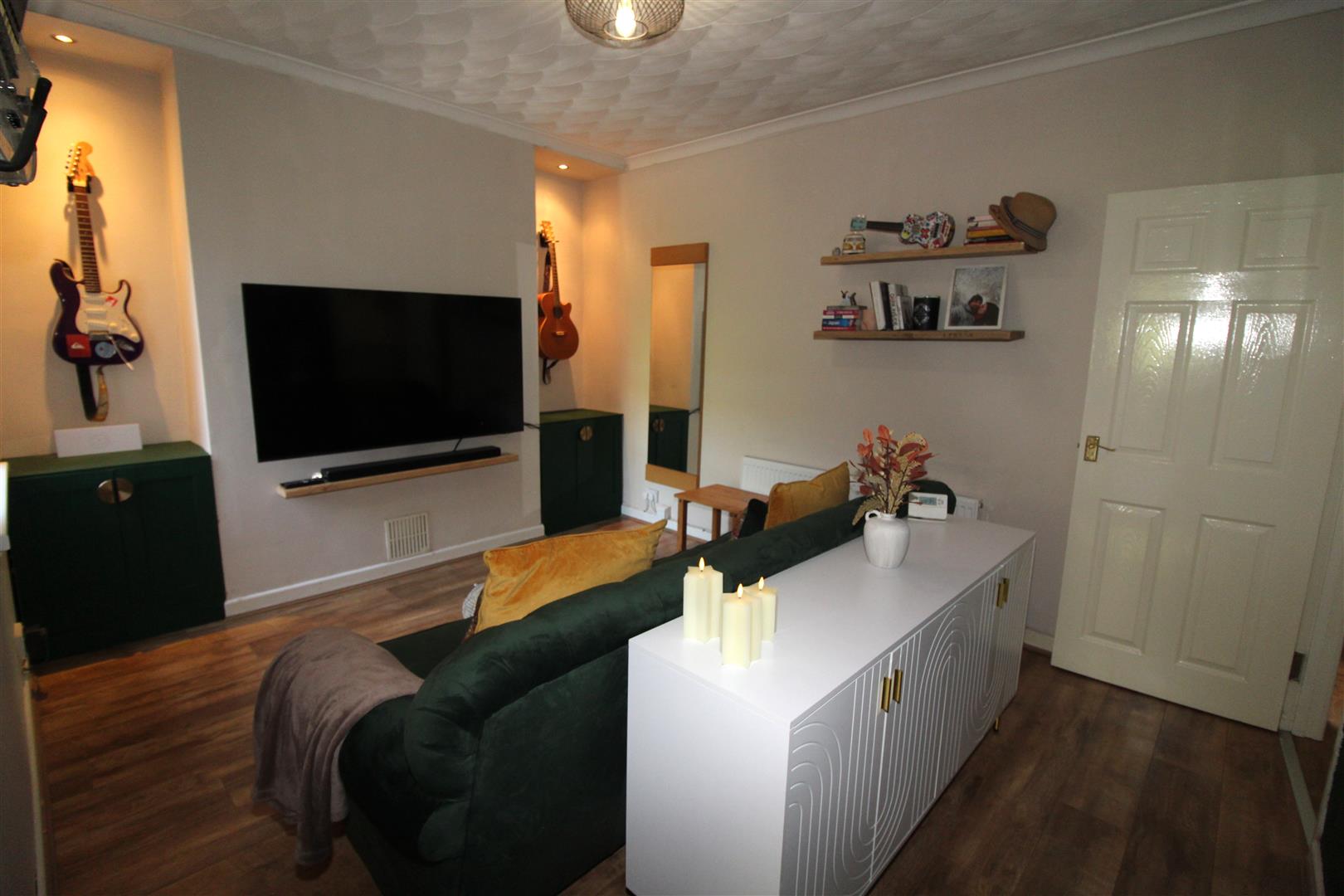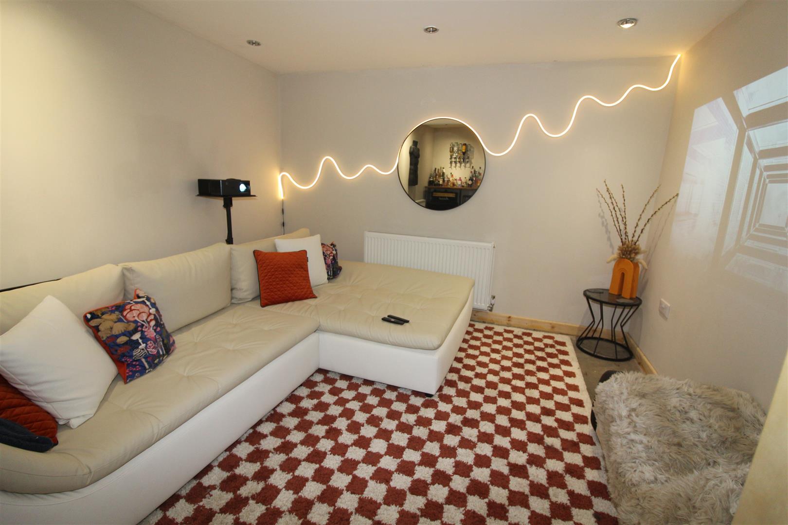 Double glazed window to rear aspect, coved and textured finish to ceiling, painted finish to walls, alcoves with display lighting, radiator, laminated wood flooring.