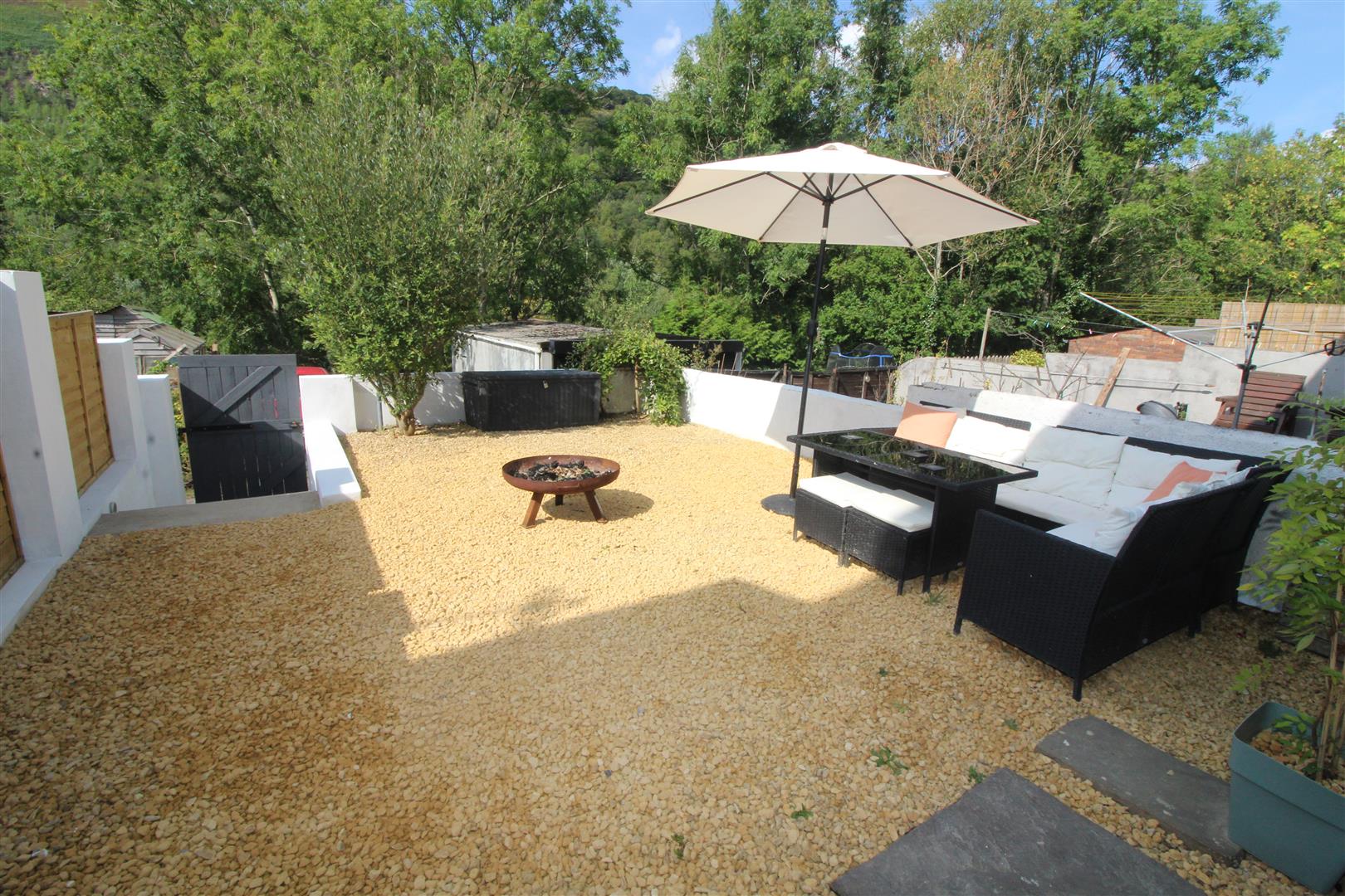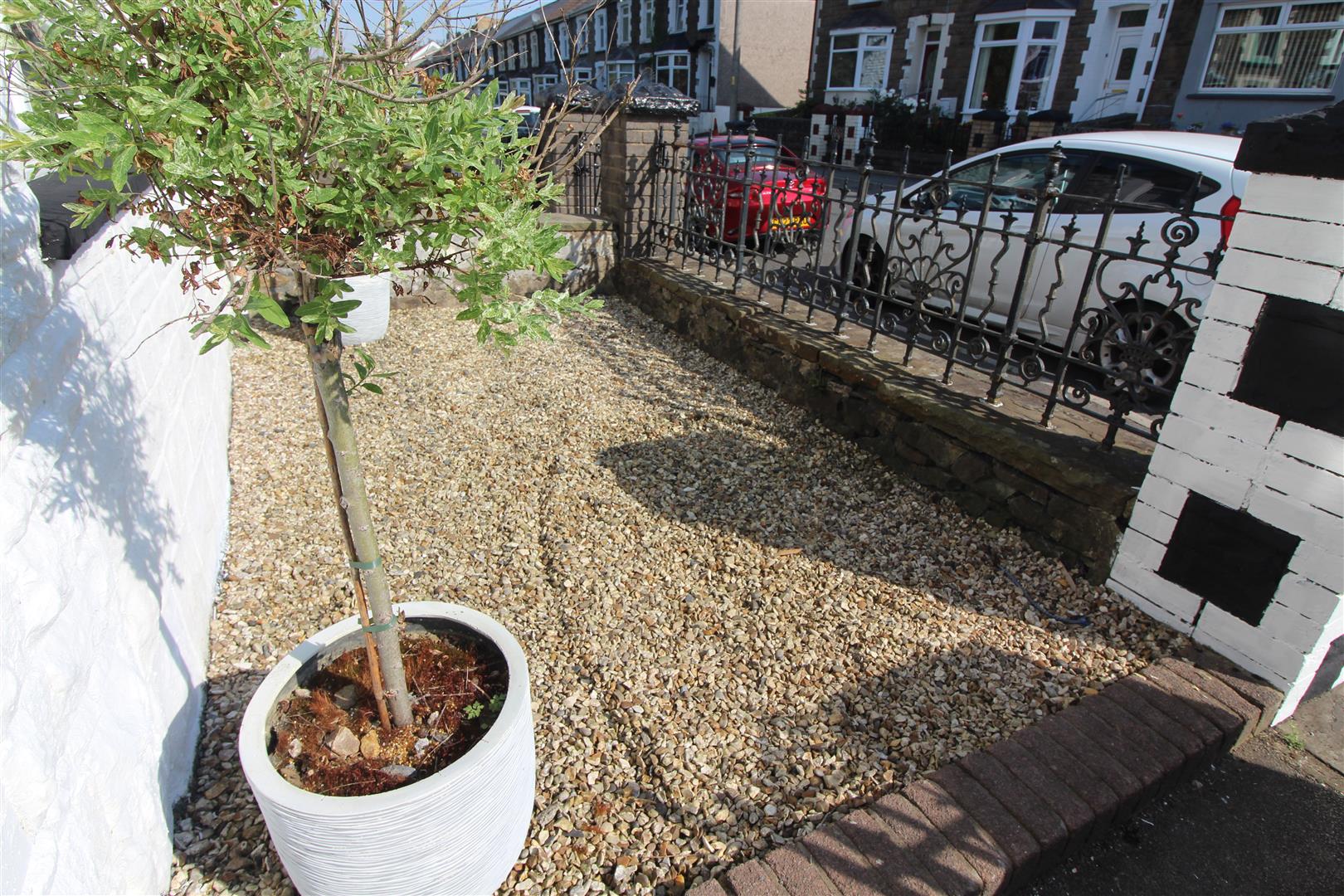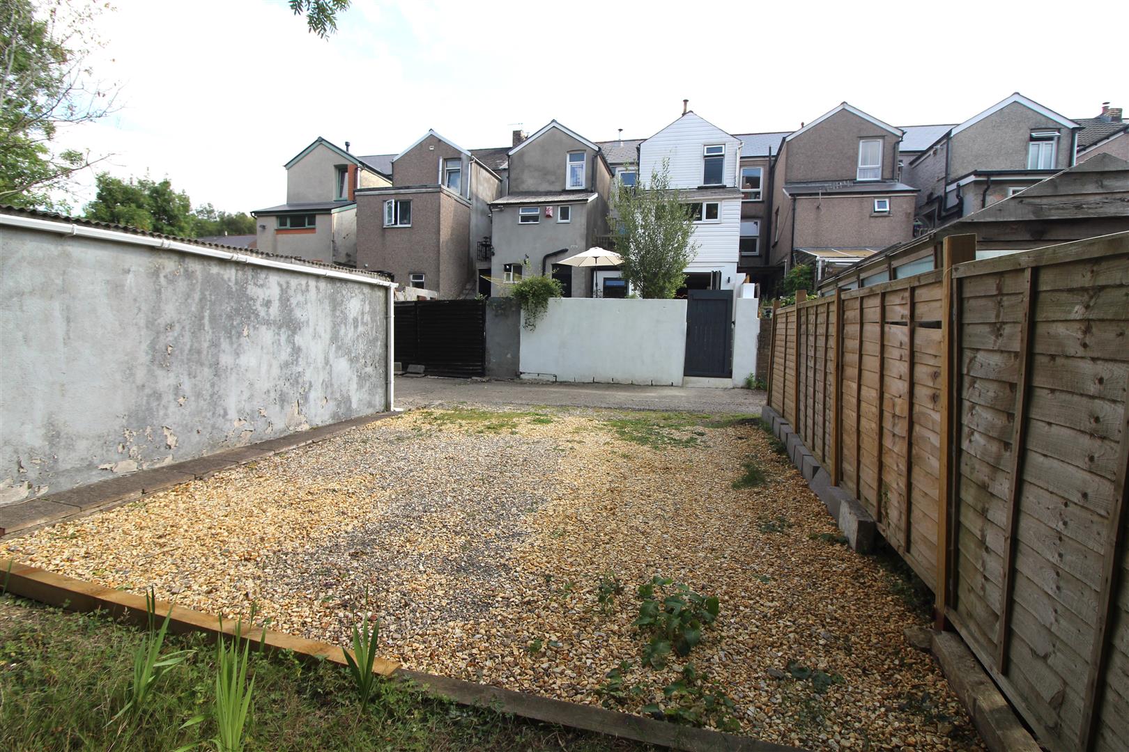 A secure and enclosed rear garden laid to pebbles with wall boundaries, external power and secure gateway leading to rear lane.
