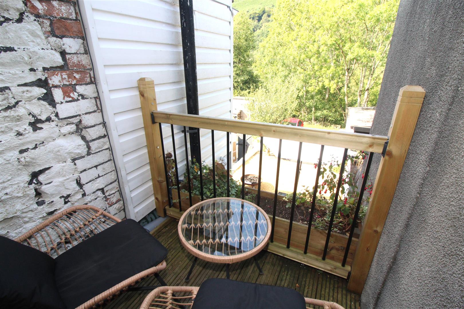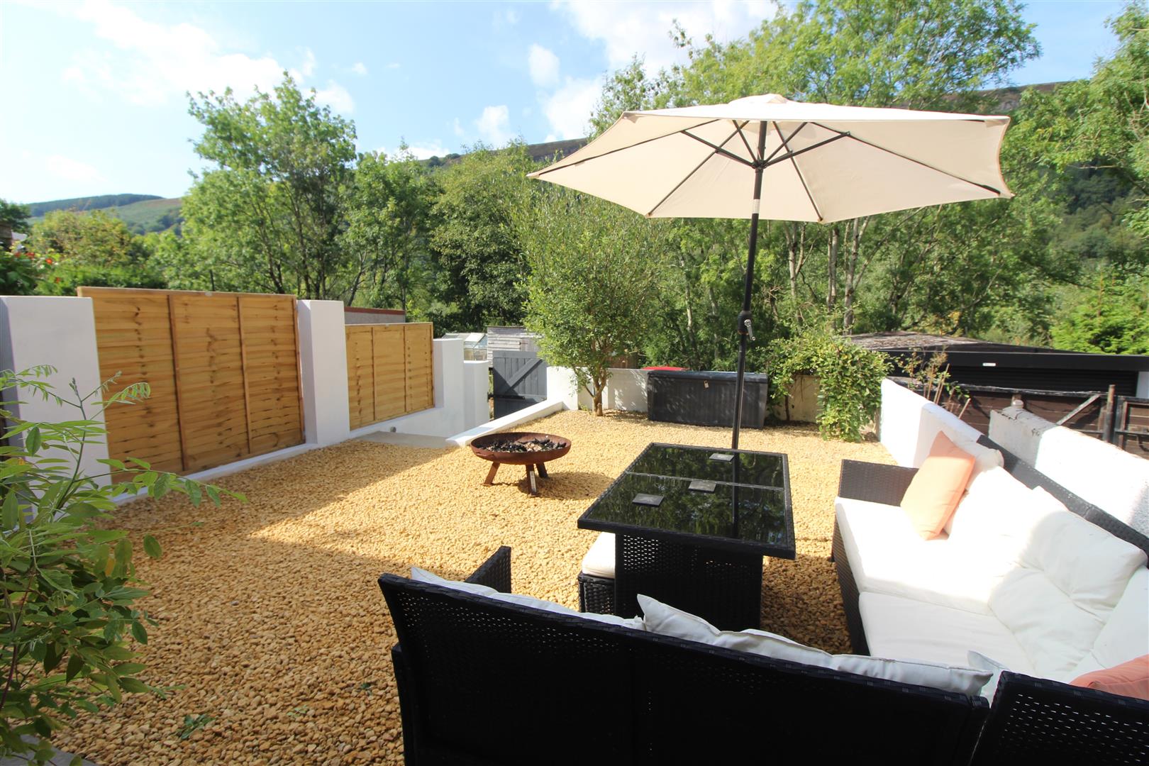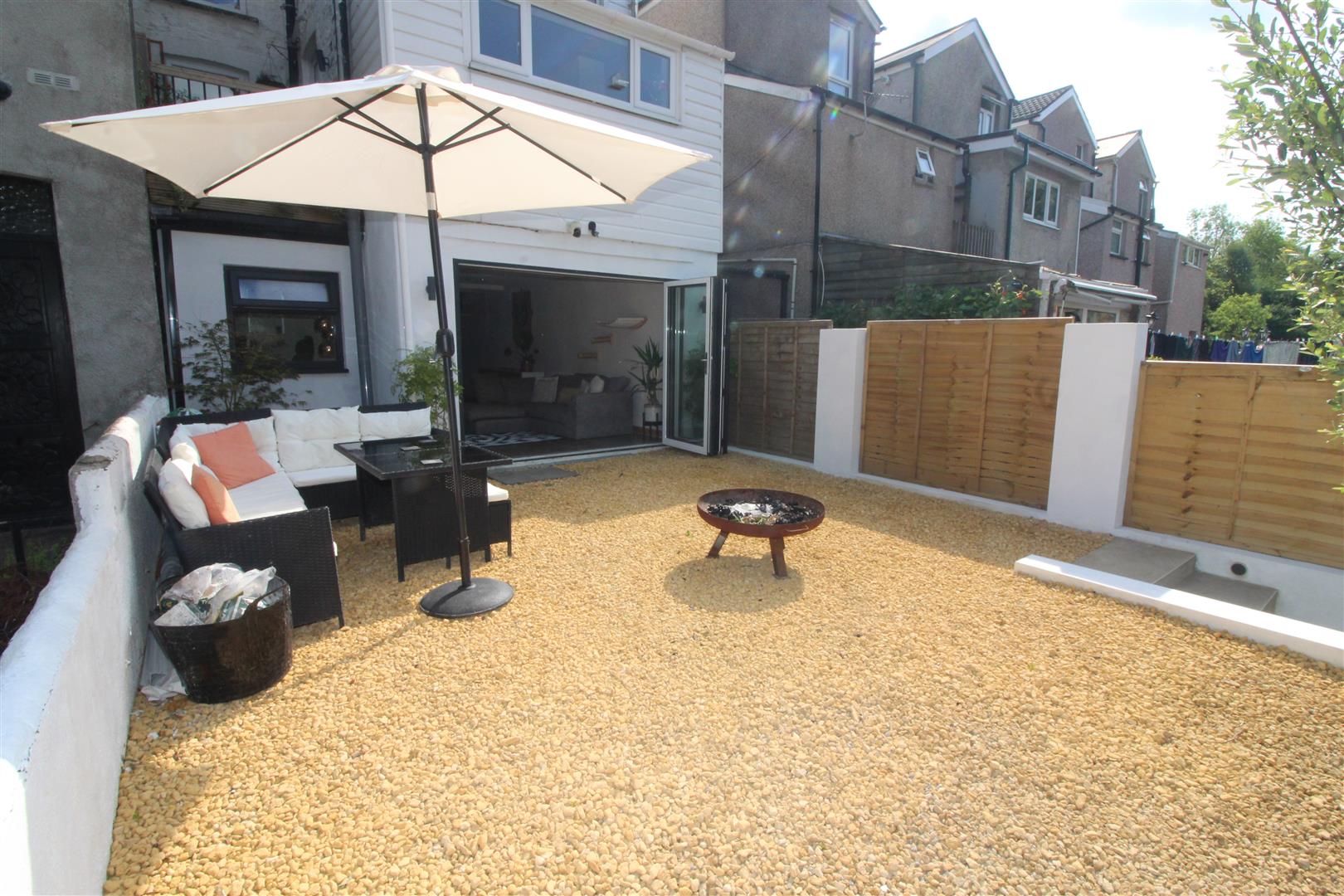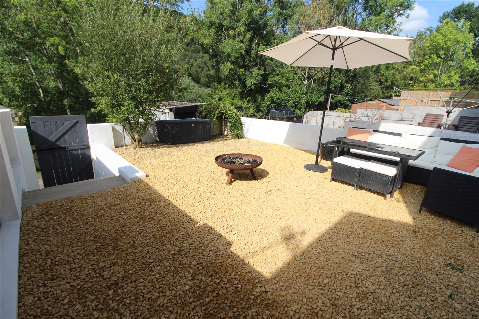 A secure and enclosed rear garden laid to pebbles with wall boundaries, external power and secure gateway leading to rear lane.