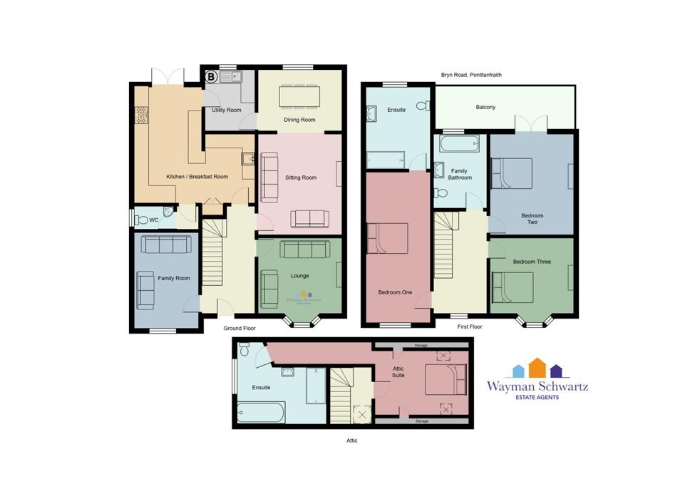 Located on Bryn Road, Pontllanfraith, Blackwood, this splendid semi-detached house offers an ideal family home with ample space and modern comforts. Boasting four generously sized double bedrooms, including an attic master suite complete with an en-suite bathroom, and first floor master bedroom with en-suite shower room, this property is designed to accommodate the needs of a growing family. Upon entering the hallway , you are greeted by a welcoming lounge featuring a delightful bay window that fills the room with natural light. The home further impresses with a variety of reception rooms, including a cosy sitting room, a versatile family room, and an elegant dining room, providing plenty of options for relaxation and entertaining. The heart of the home is undoubtedly the large kitchen/breakfast room, perfect for family gatherings and casual dining. Additionally, a convenient ground floor WC enhances the practicality of the layout together with the large first floor family bathroom. Outside, the property boasts a substantial rear garden, ideal for outdoor activities and summer barbecues, along with a decked balcony leading from bedroom two and accessed via the rear garden that provides a lovely spot to enjoy the fresh air. Off-road parking for two vehicles adds to the convenience of this delightful home. This property is not just a house; it is a spacious family haven that combines comfort, style, and functionality in a sought-after location and offers good road and bus links.