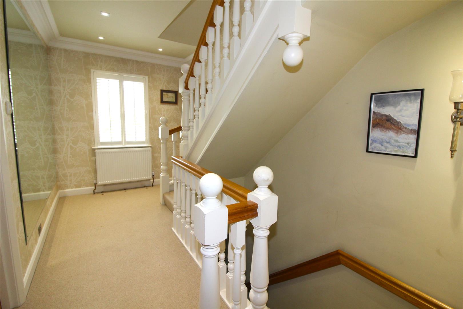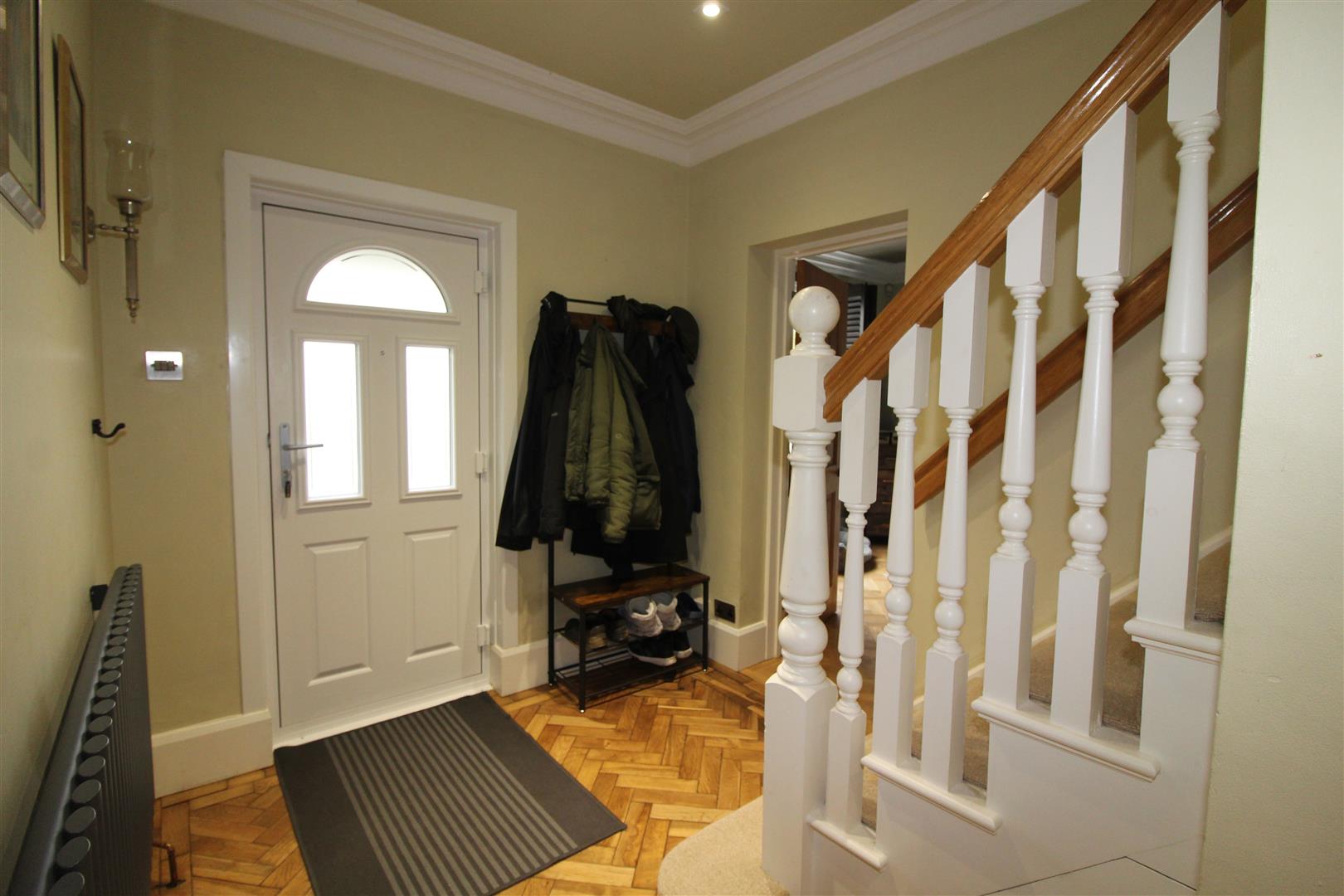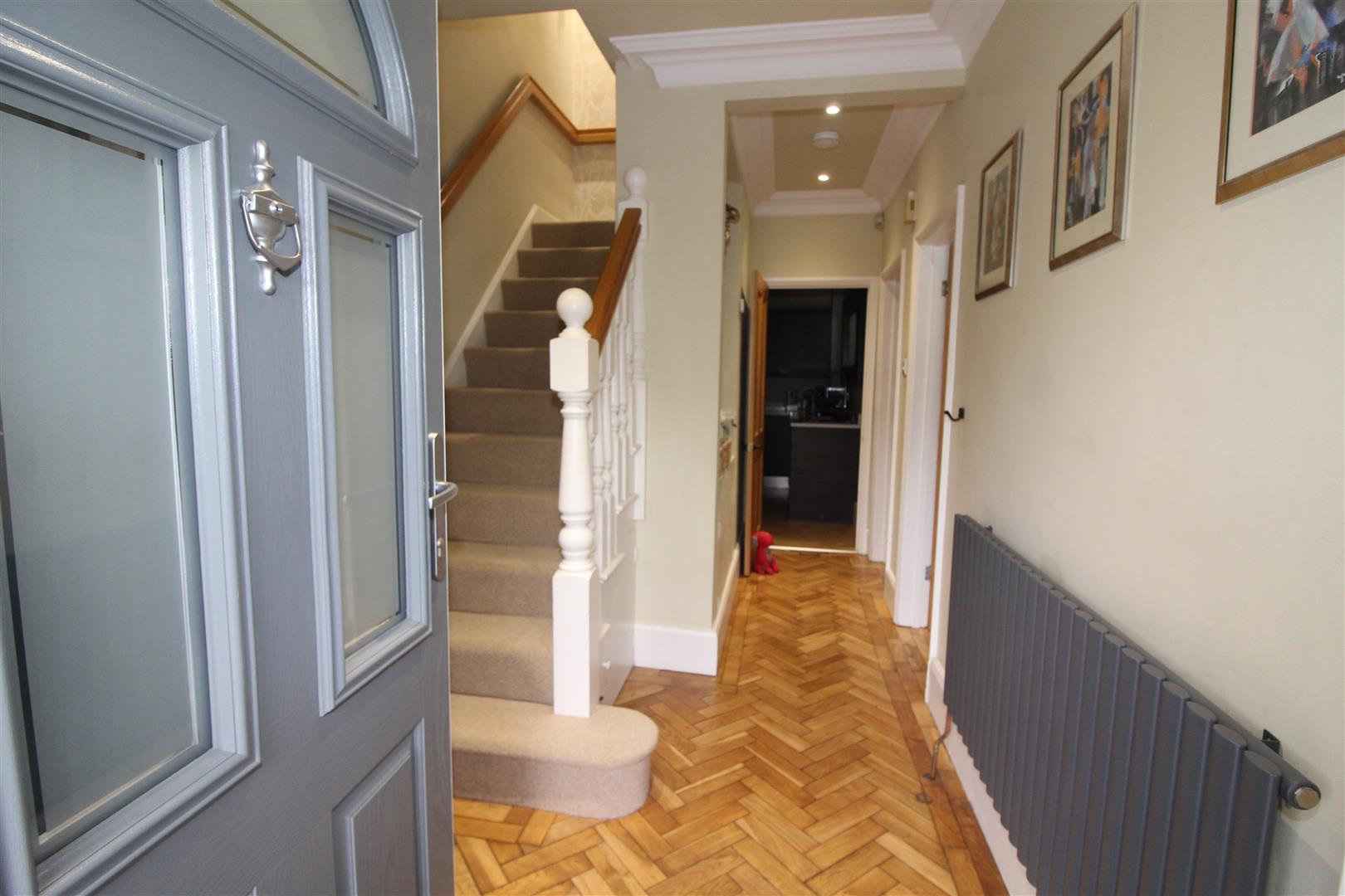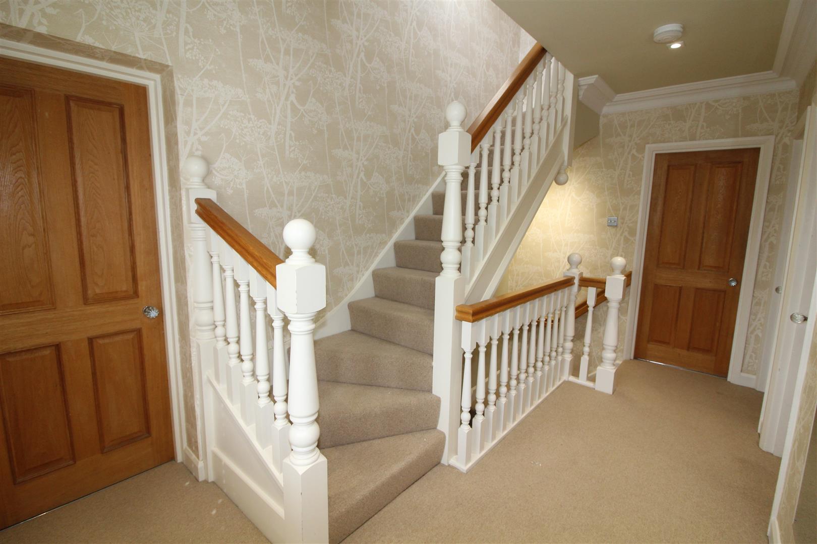 Double glazed window to front aspect, coved and painted finish to ceiling, spot lighting, large wall mounted mirror, papered finish to walls, radiator, stairs leading to second floor.