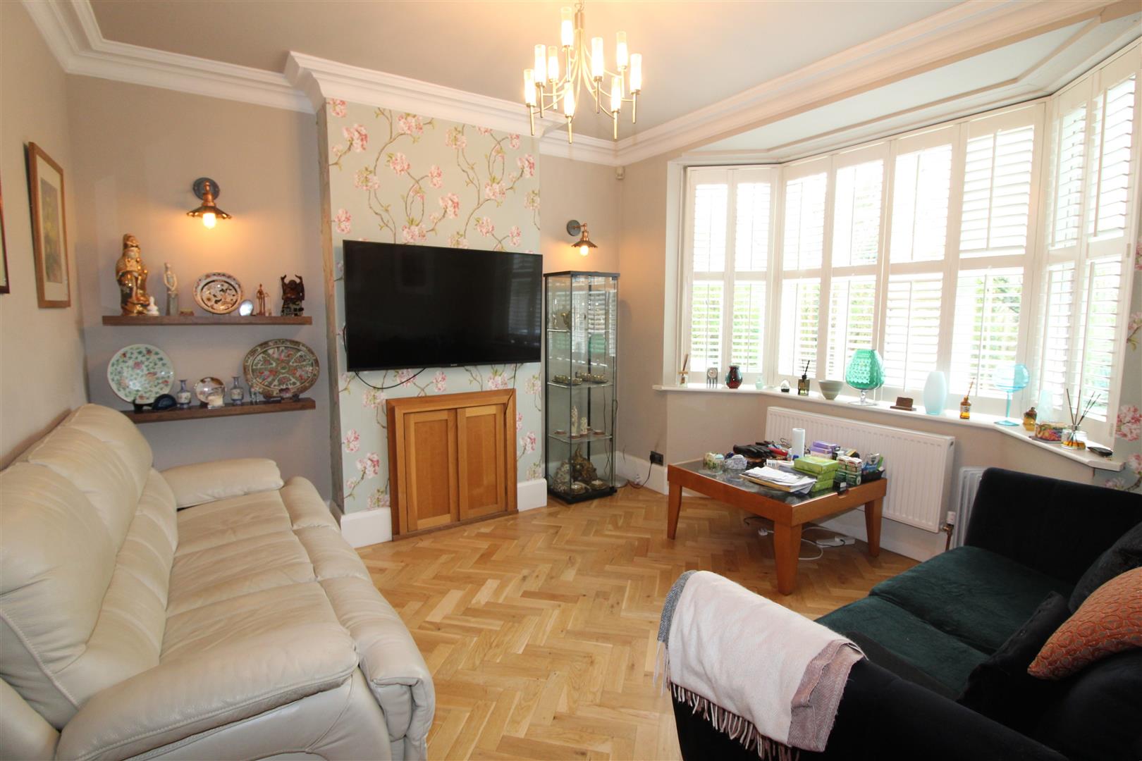 Double glazed bay window to front aspect, coved and painted finish to walls and ceiling, radiator, wood flooring.