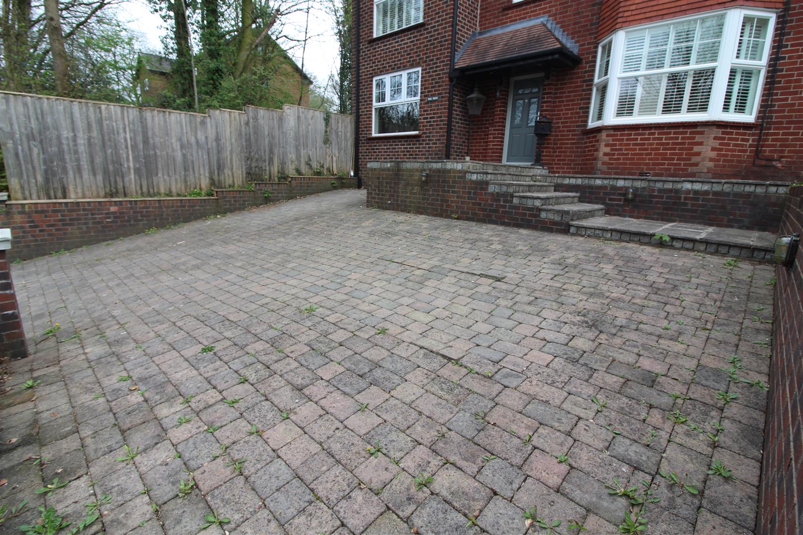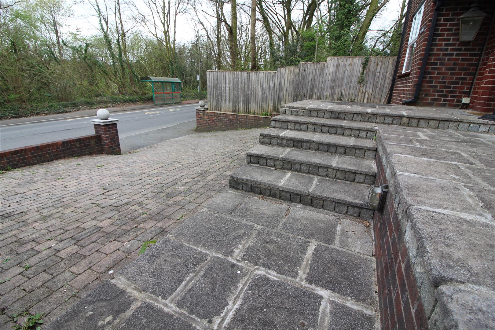Raised paved patio accessed via steps from the off road parking area, storm porch.