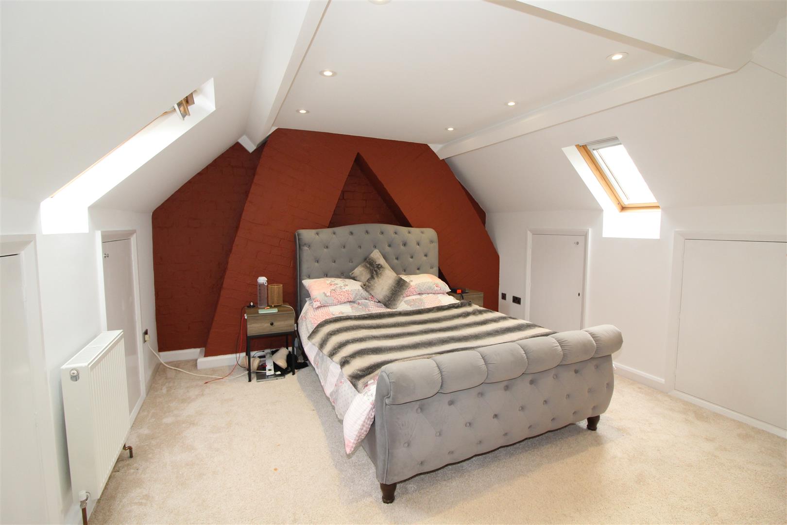 Two sky lights to front and rear aspects, painted finish to sloped ceiling, painted finish to walls, under-eaves storage, radiator, open to dressing area with heated towel rail leading to en-suite.