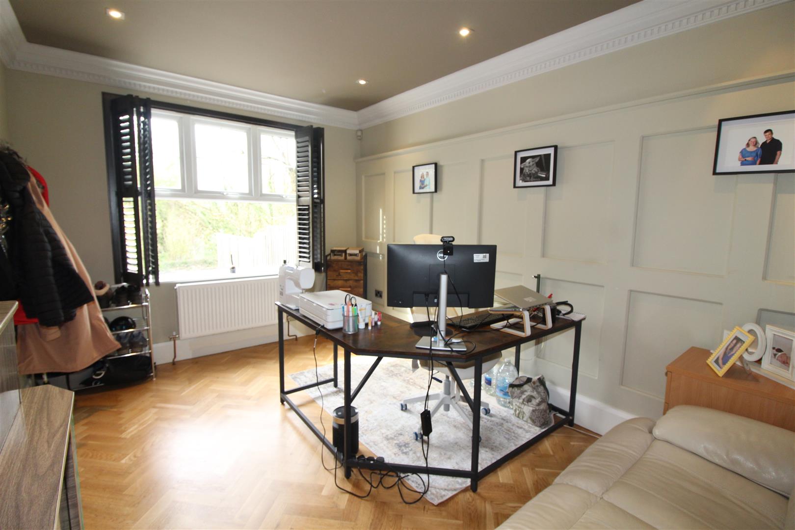 Double glazed window to rear aspect, coved and painted finish to walls and ceiling, ceiling rose, laminated wood flooring, radiator.