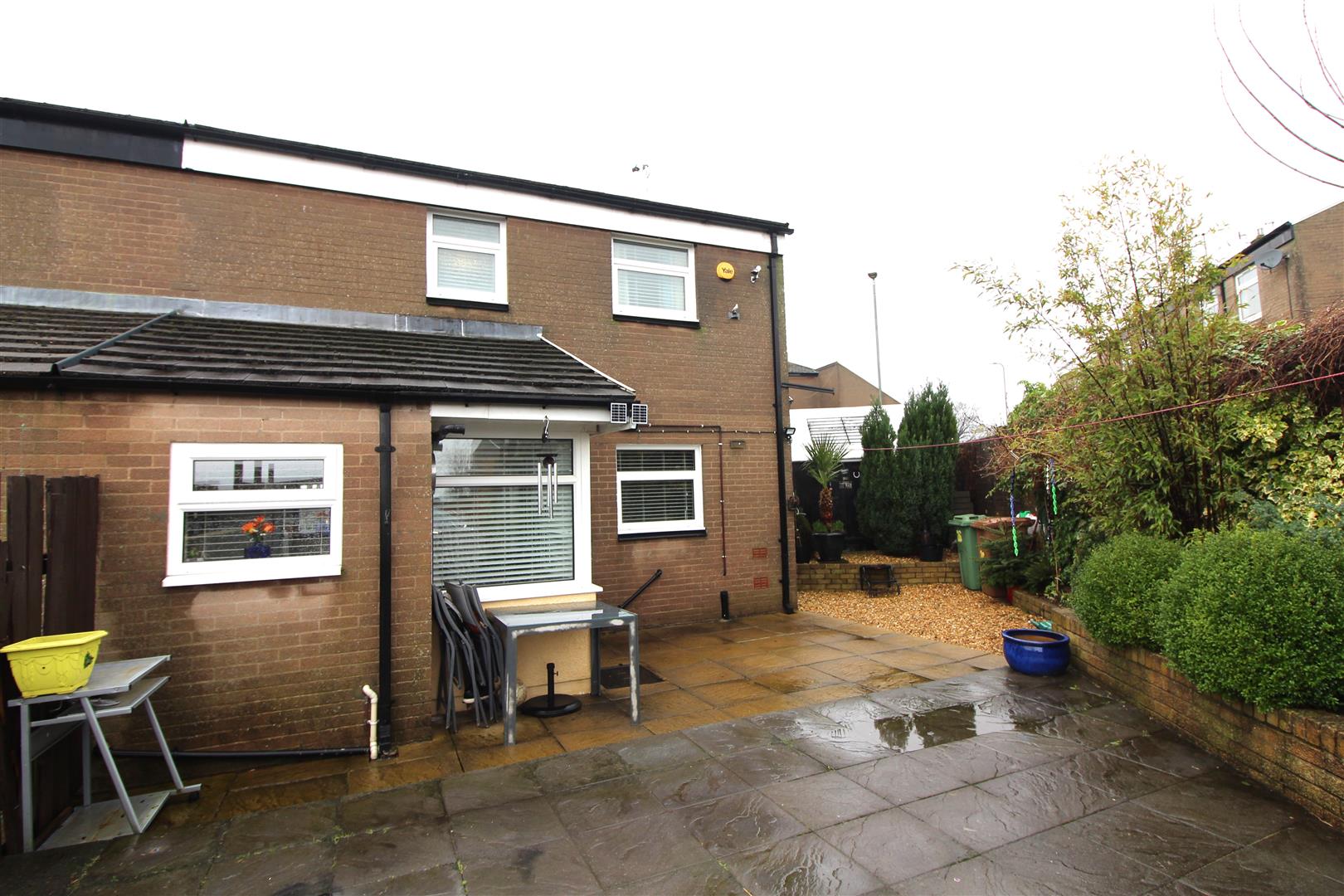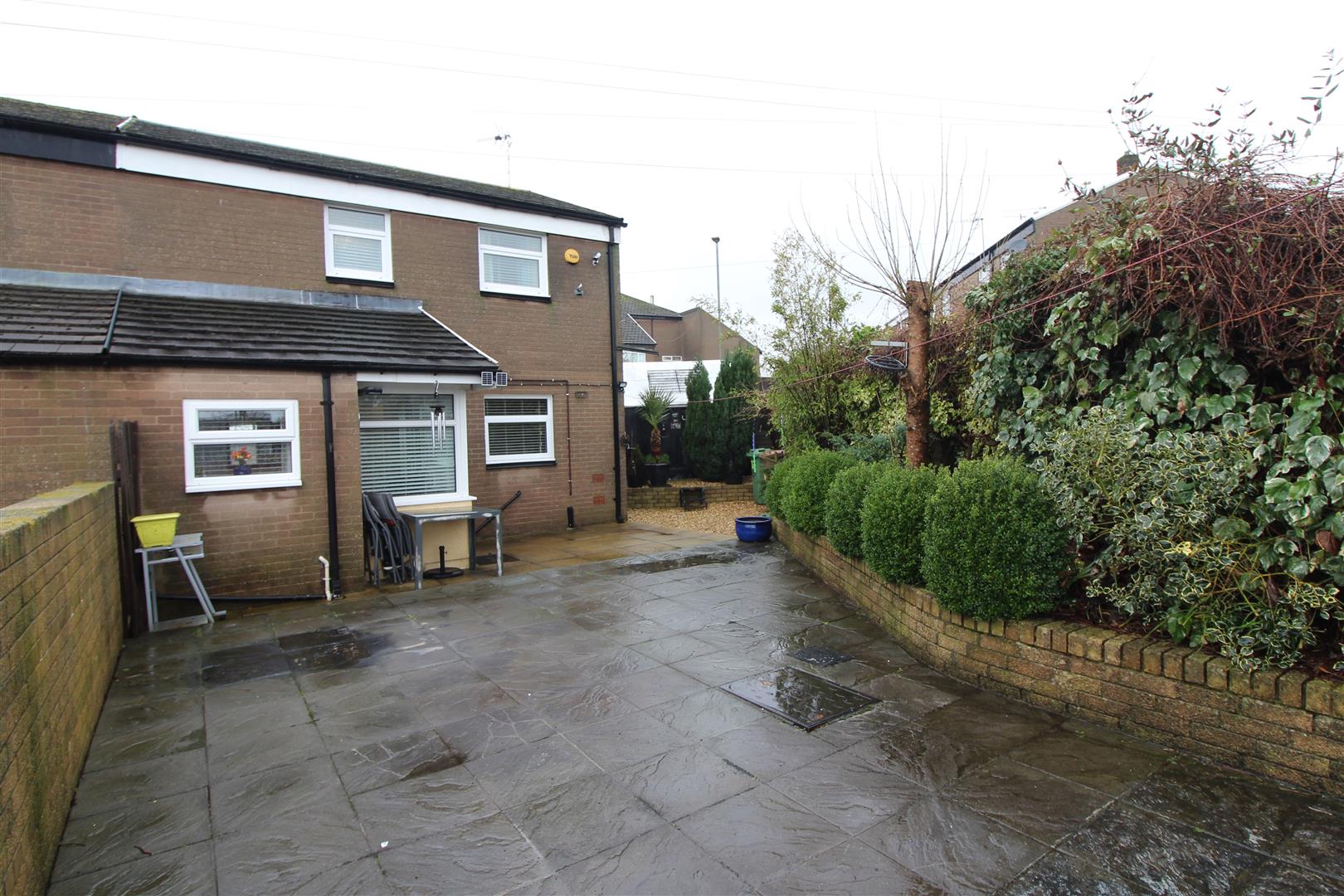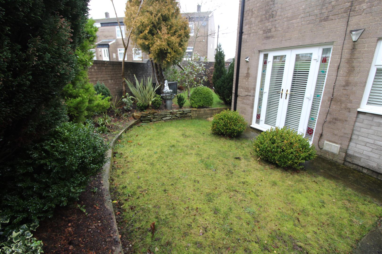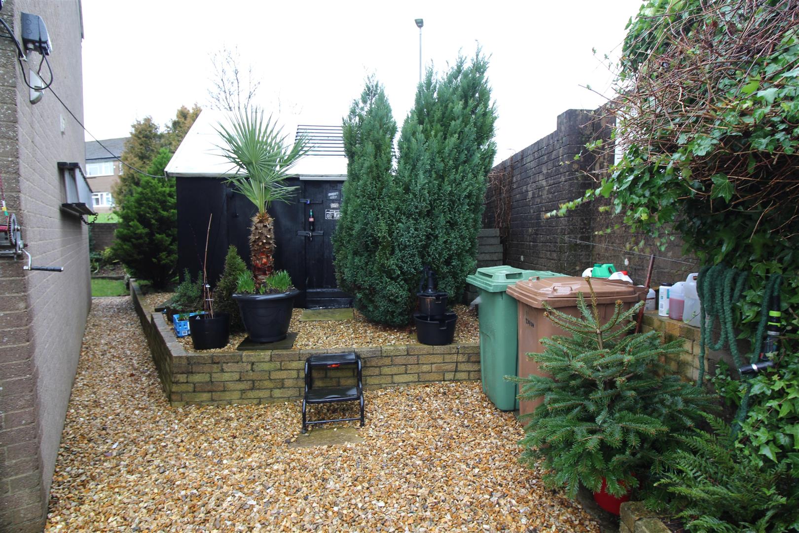 Via pedestrian access, gated access to garden with mature shrubs and grass.
