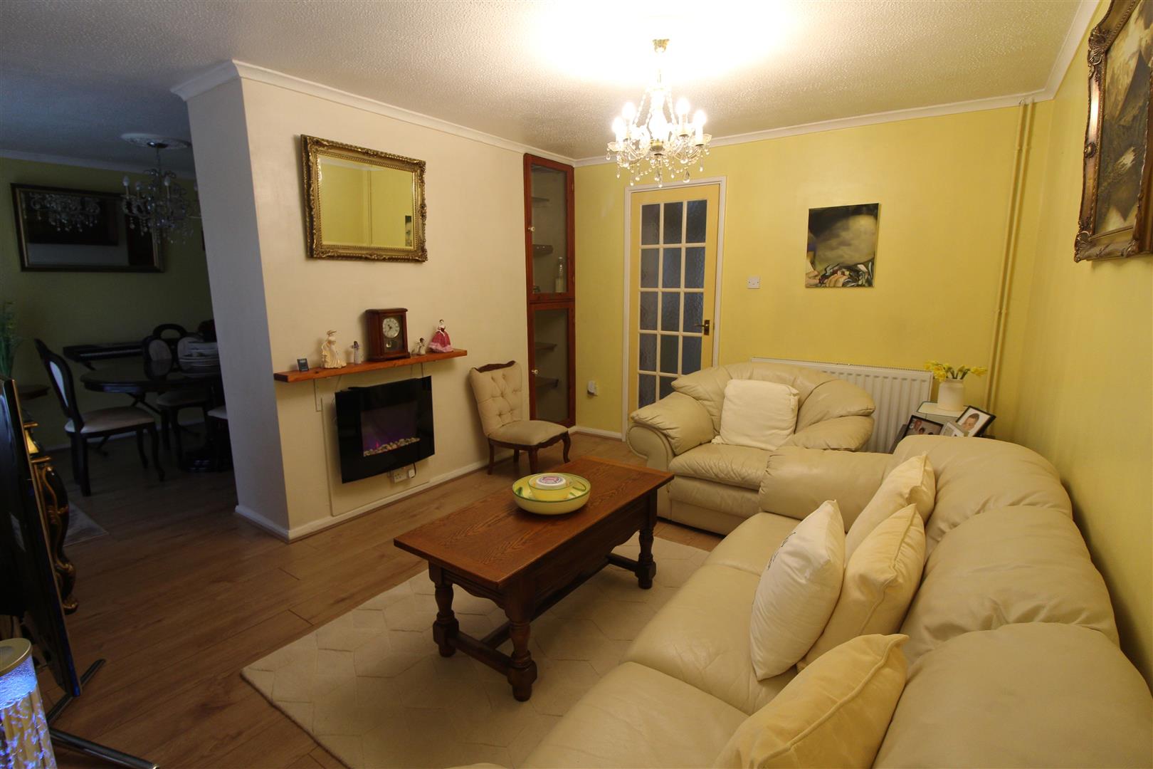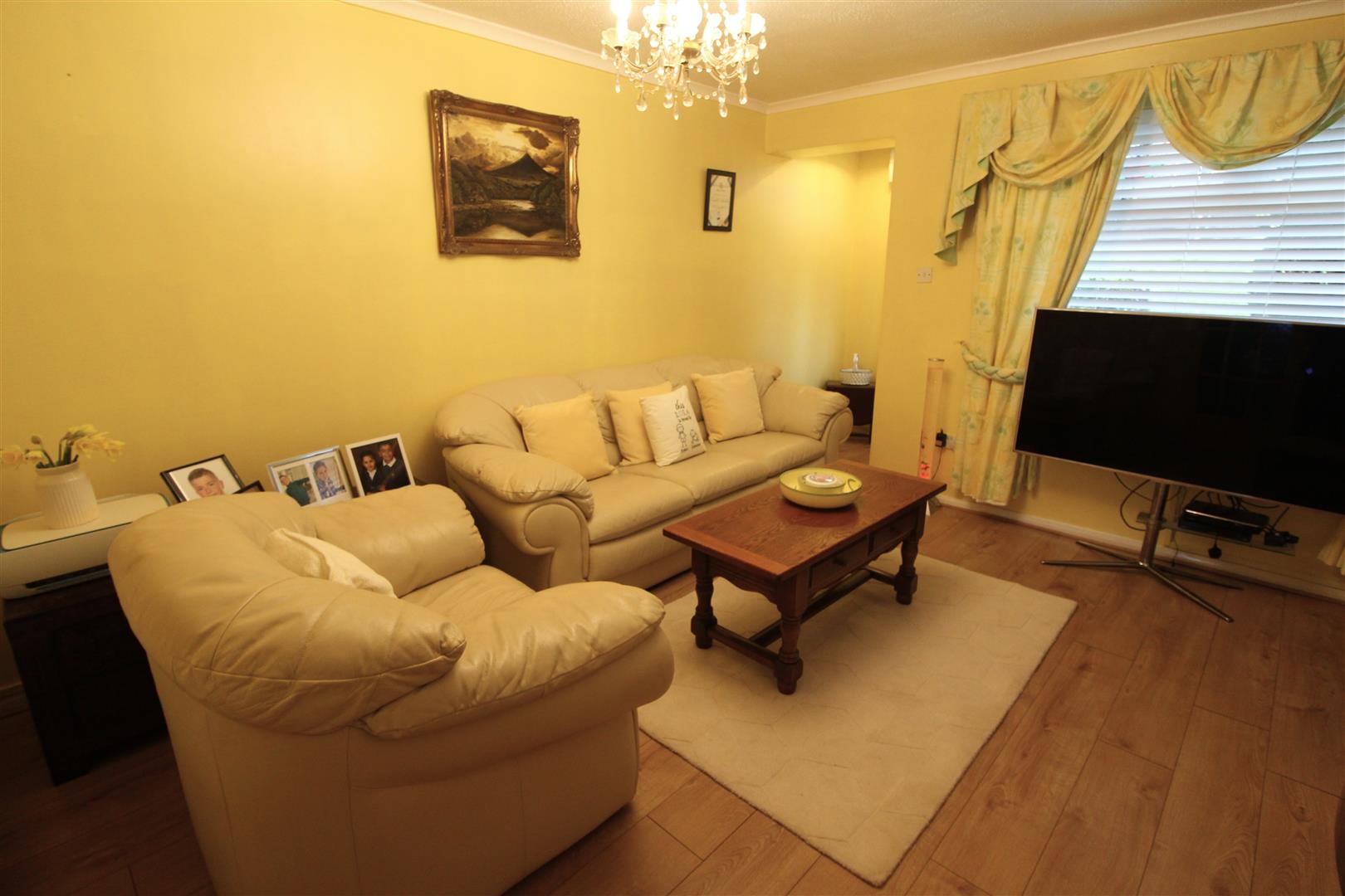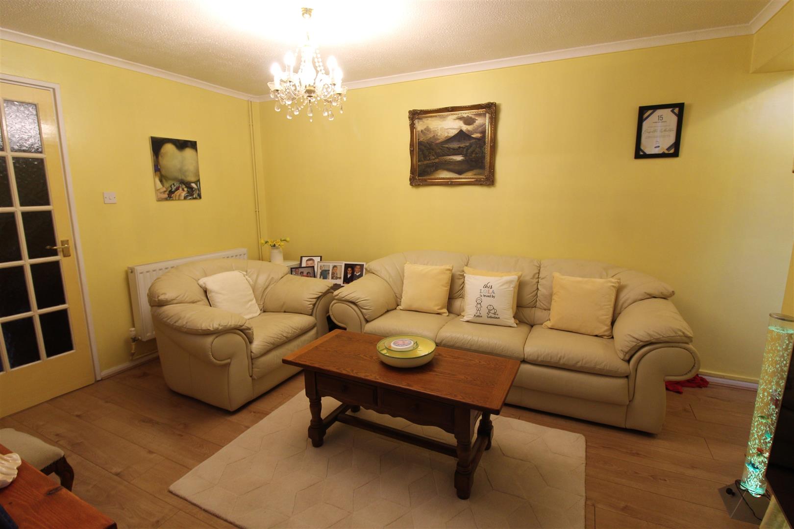 Double glazed window to front aspect, coved and textured finish to ceiling, painted finish to walls, laminated wood flooring, radiator, cupboard, opening to dining room.