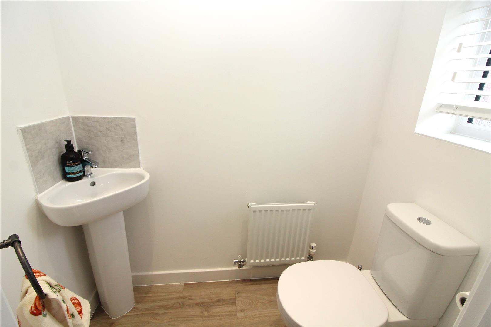Double glazed window to front aspect with obscured glass, painted finish to walls and ceiling, spot lighting, low level WC, wash hand basin, luxury vinyl flooring, radiator.