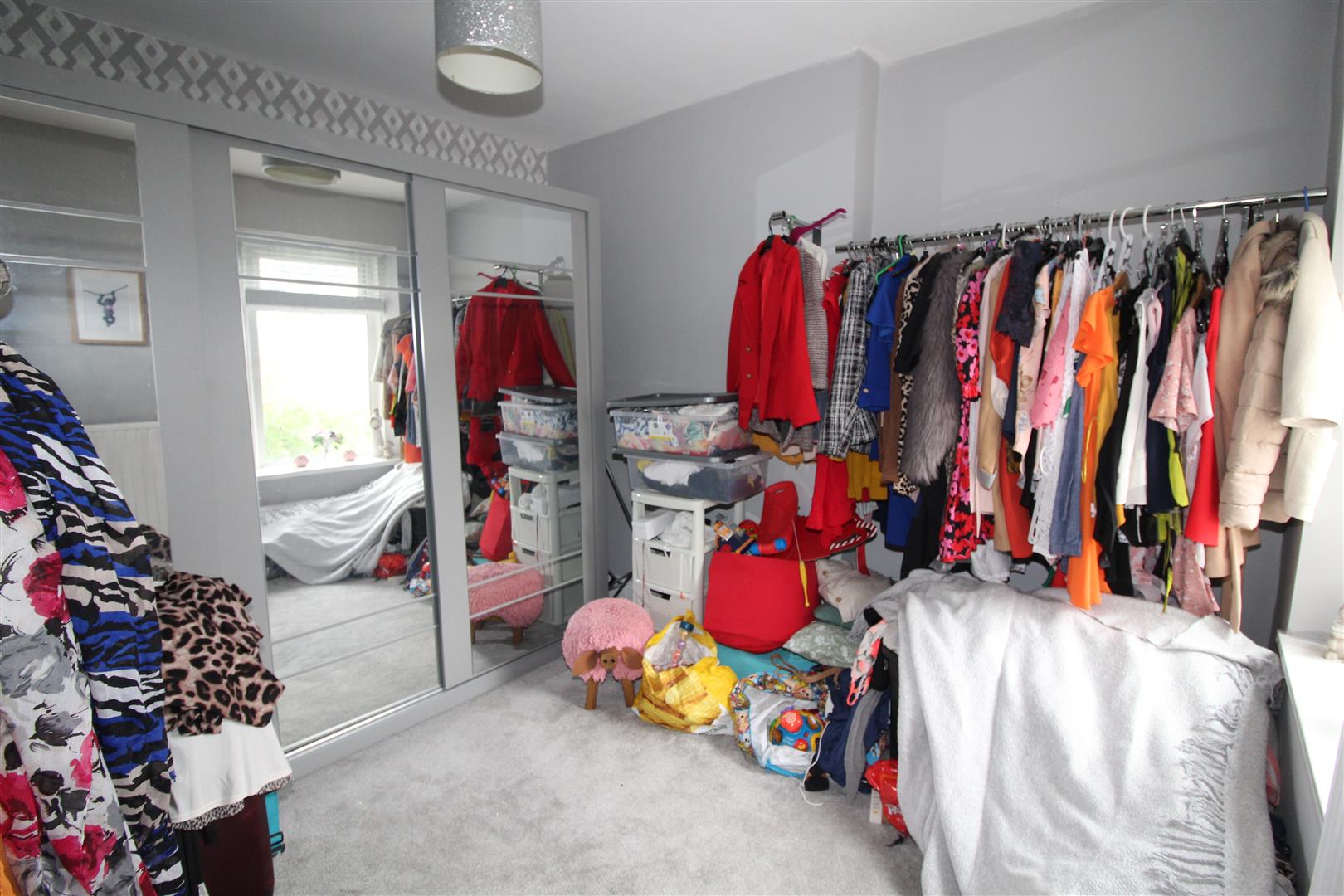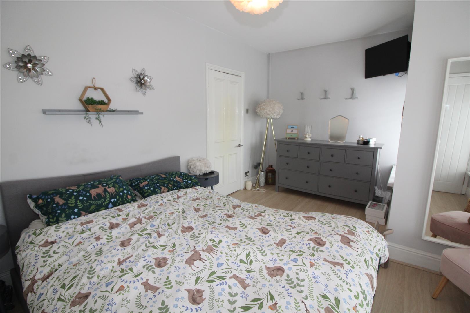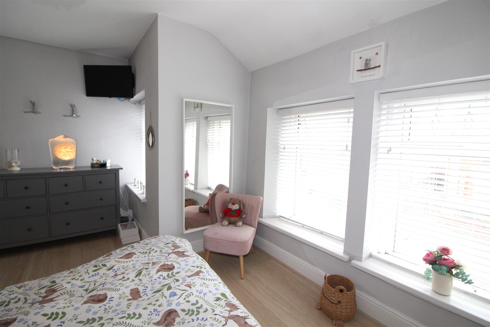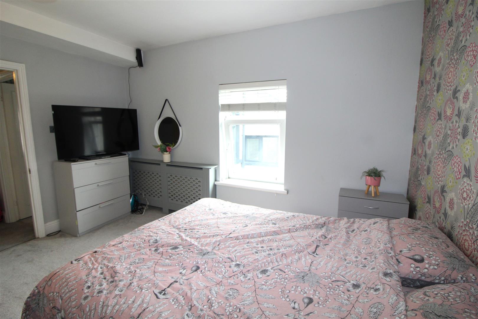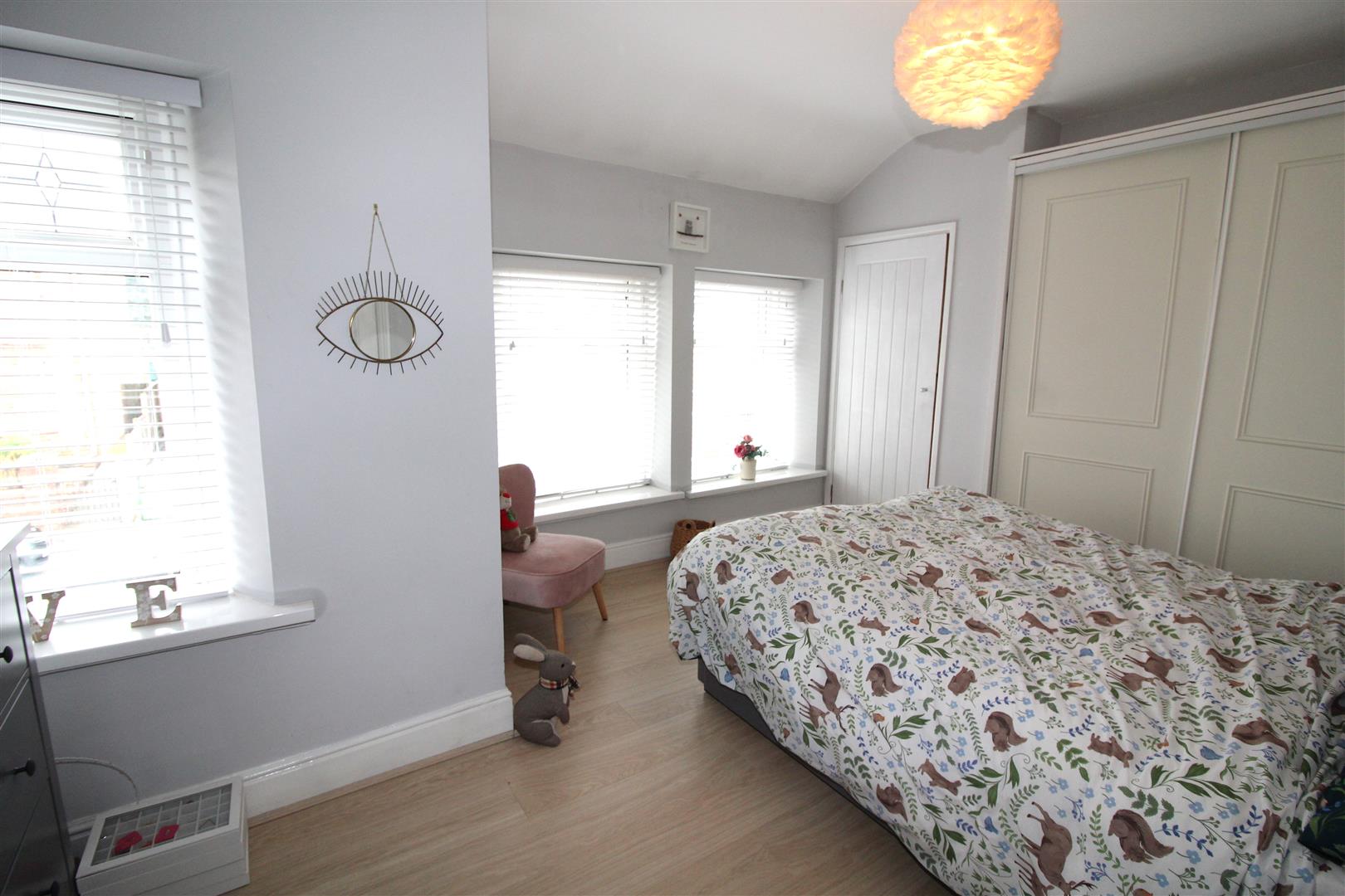 Double glazed square bay window to front aspect, double glazed window to front, painted finish to walls and ceiling, fitted wardrobes with sliding fronts, cupboard housing wall mounted gas central heating combination boiler, radiator.