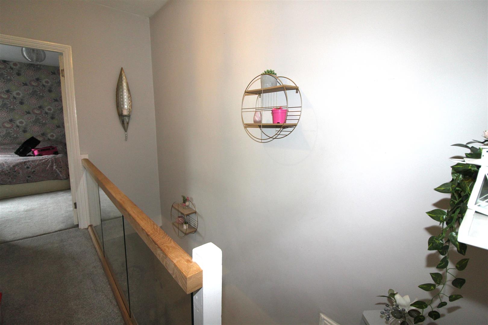 Painted finish to walls and ceiling, glazed balustrading.