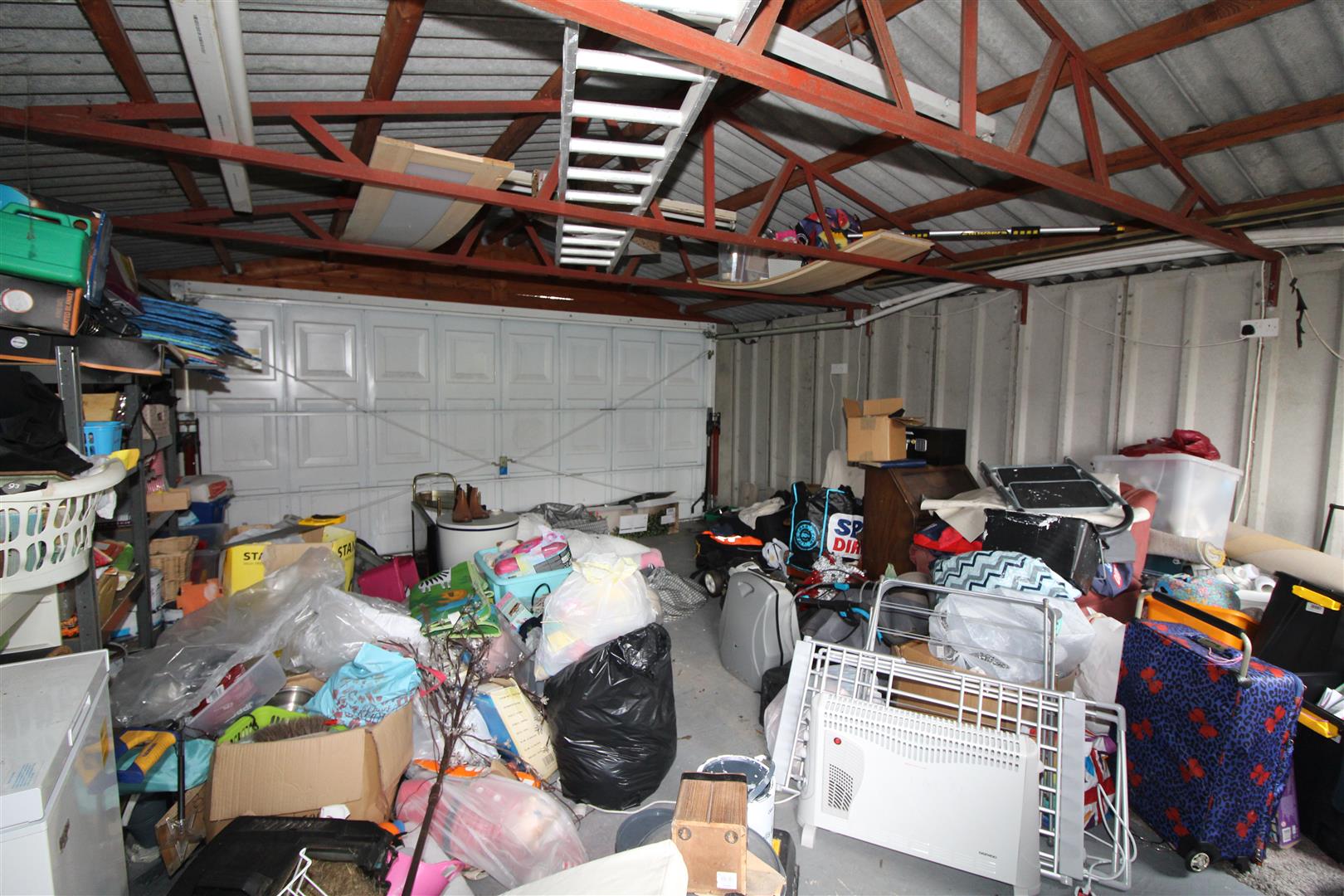 A detached double garage with up and over door, power and light. Rear lane access.
