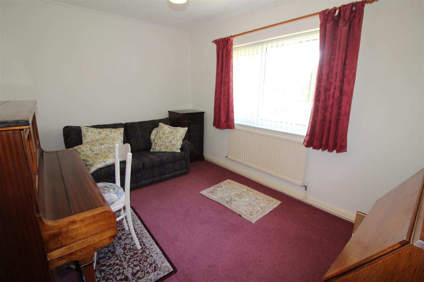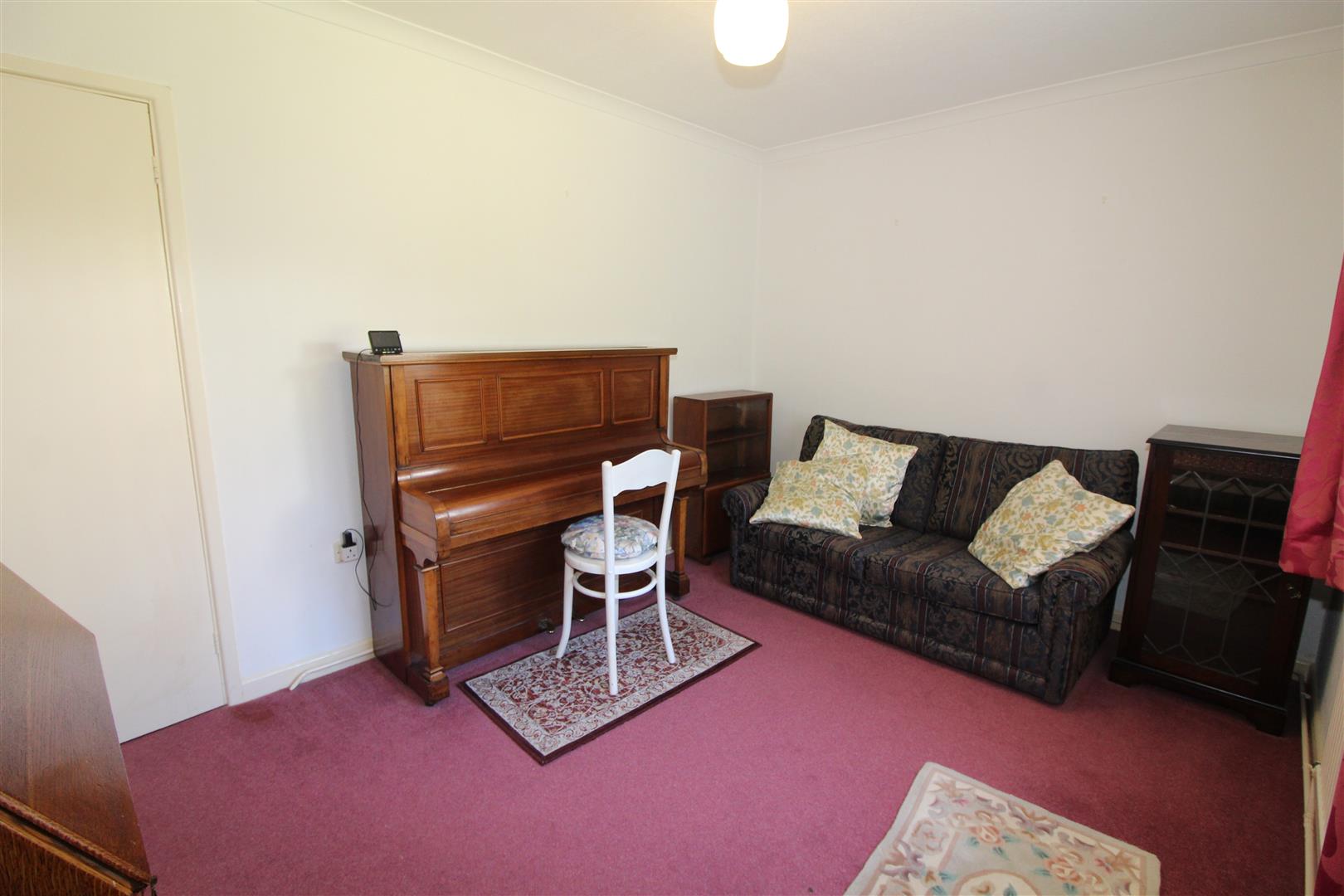 Coved and papered finish to walls and ceiling, fireplace, radiator, double glazed patio doors overlooking garden.