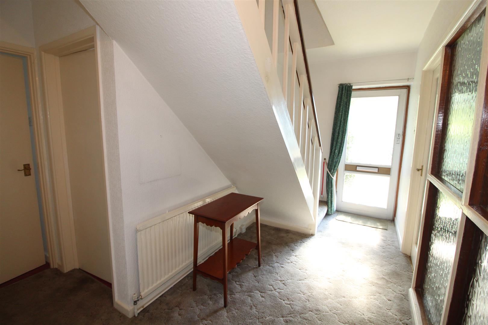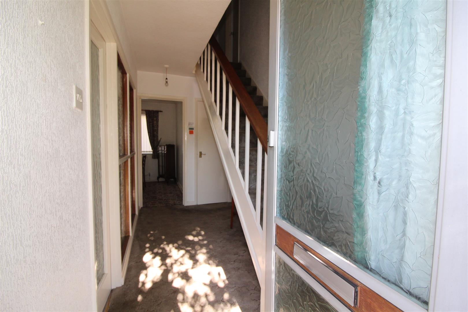 Double glazed entrance door, papered finish to walls and ceiling, stairs leading to first floor, radiator, store cupboard.