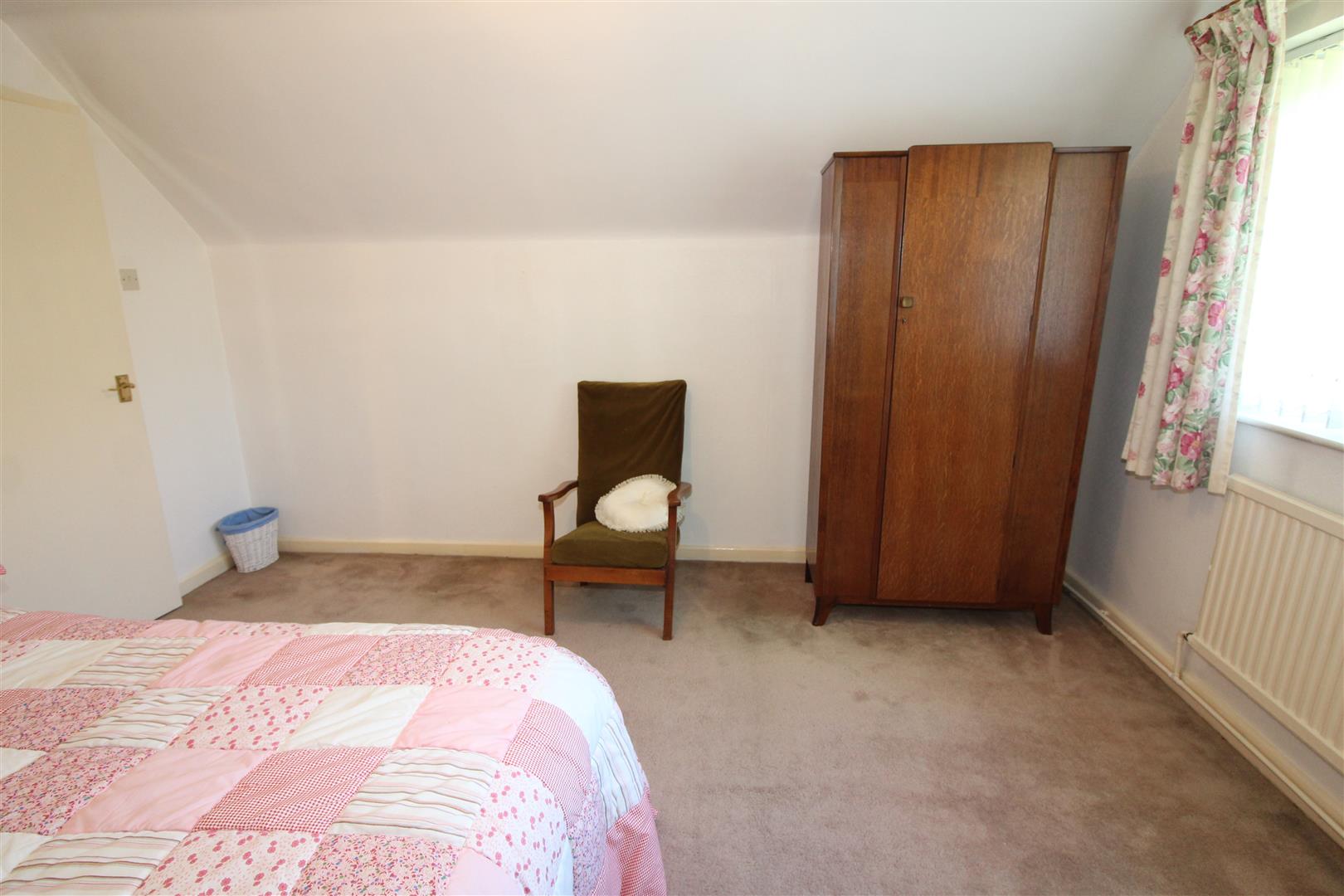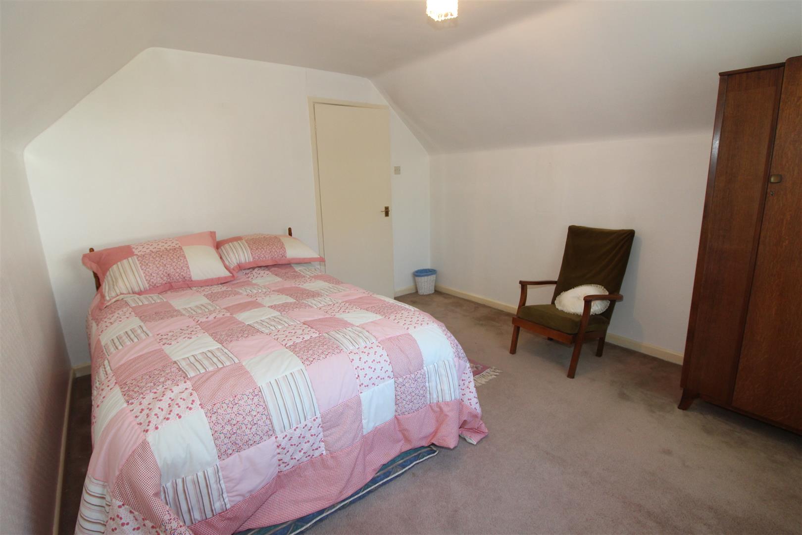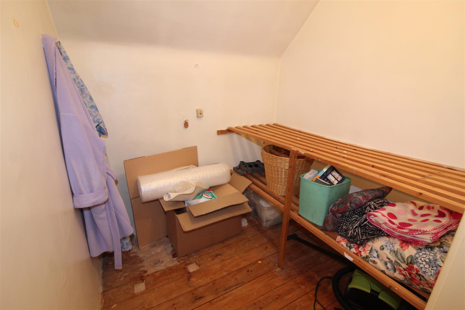 Double glazed window with views, painted finish to part sloped ceiling, radiator, under-eaves storage.