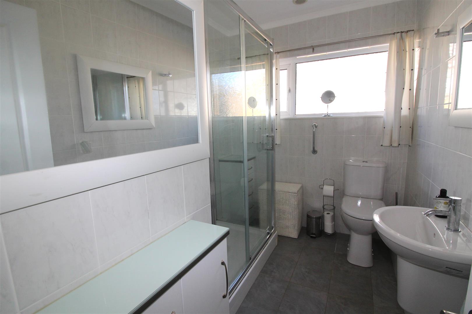 Double glazed window with obscured glass, coved and painted finish to ceiling, tiled walls, low level WC, wash hand basin, shower enclosure with dual shower heads, heated towel rail.