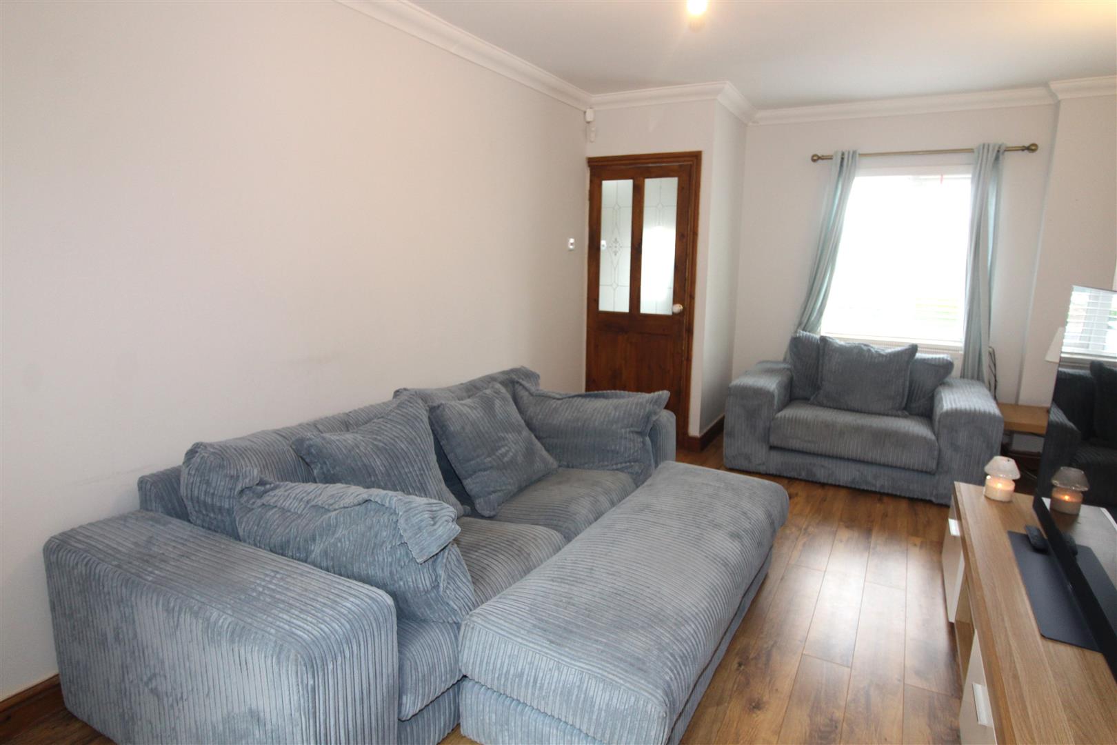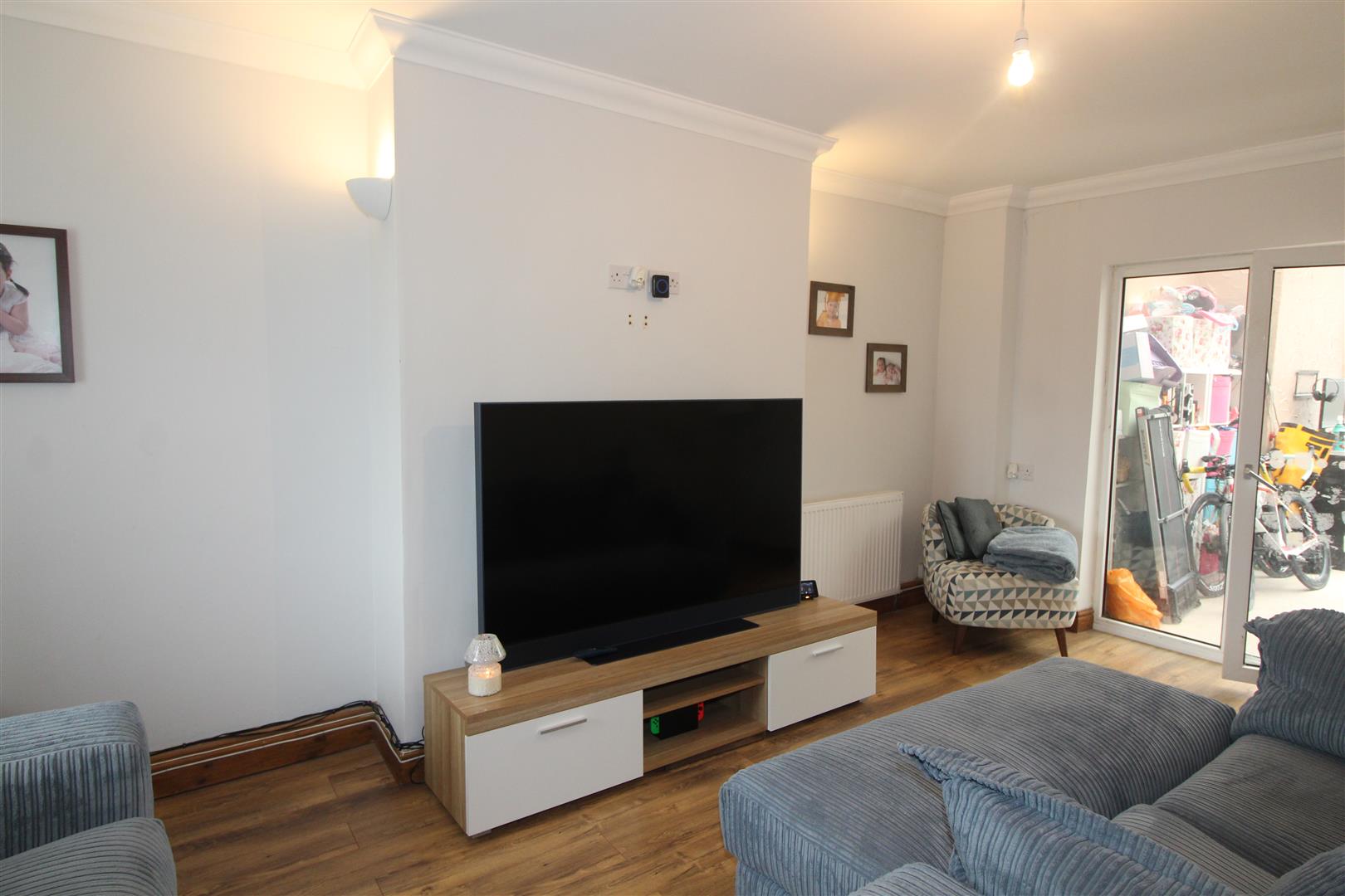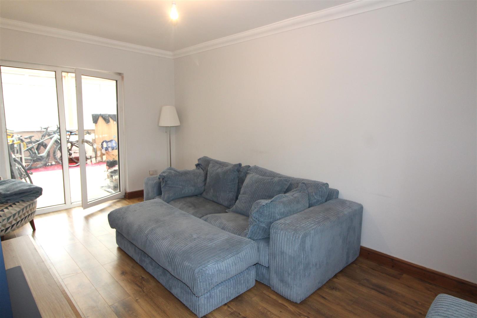 Double glazed window to front aspect, coved and painted finish to walls and ceiling, laminated wood flooring, radiator., double glazed door with side screen leading to lean-to.