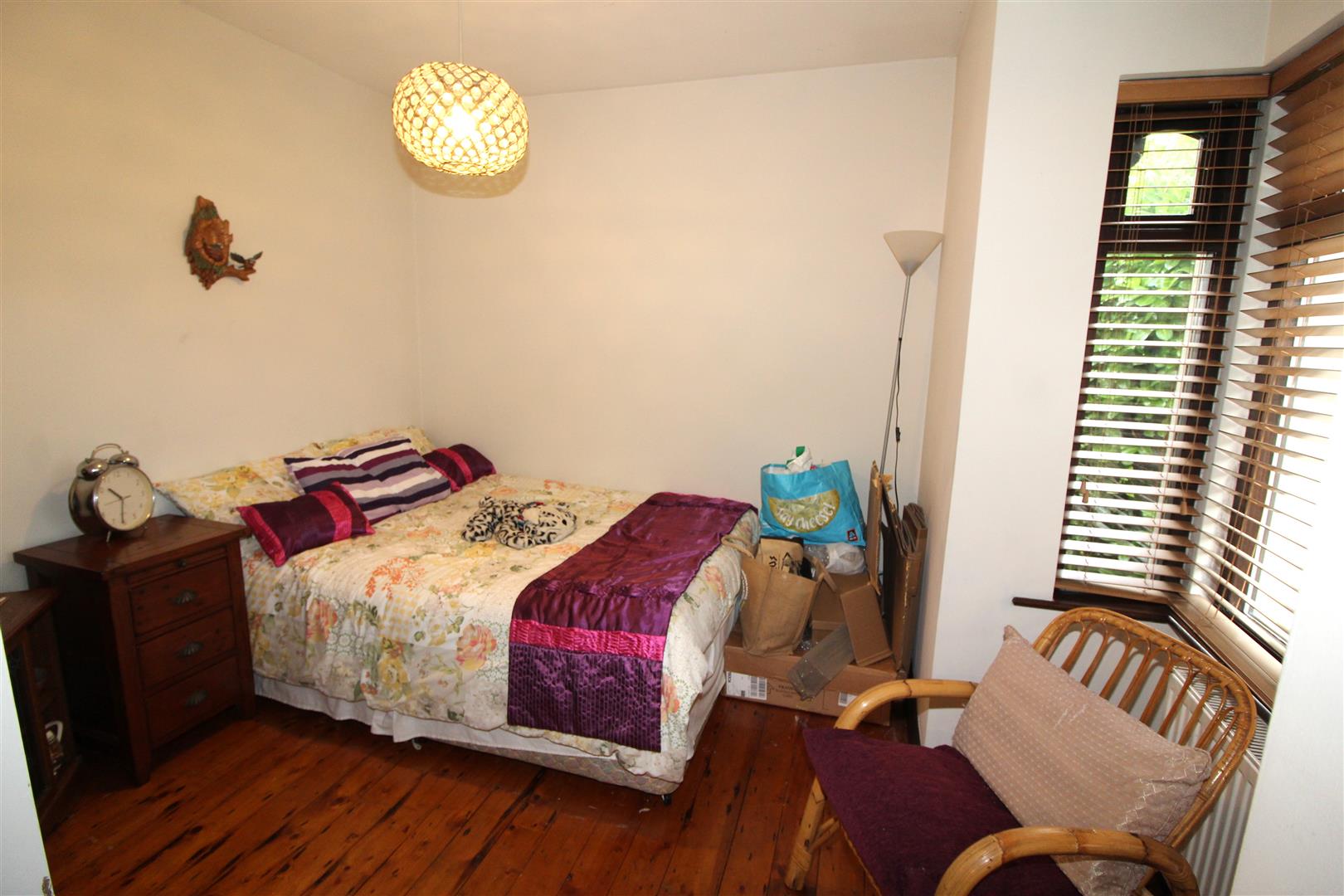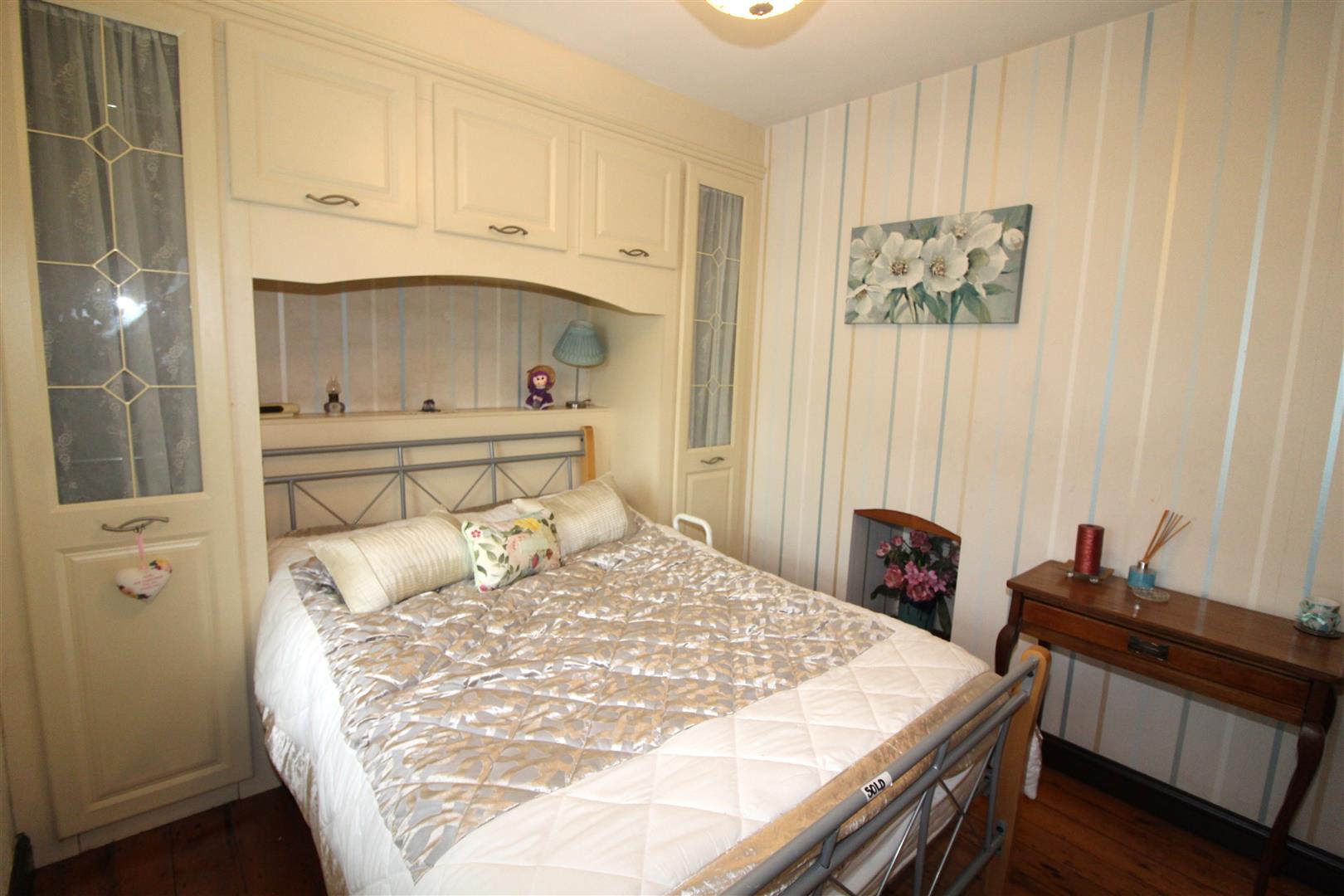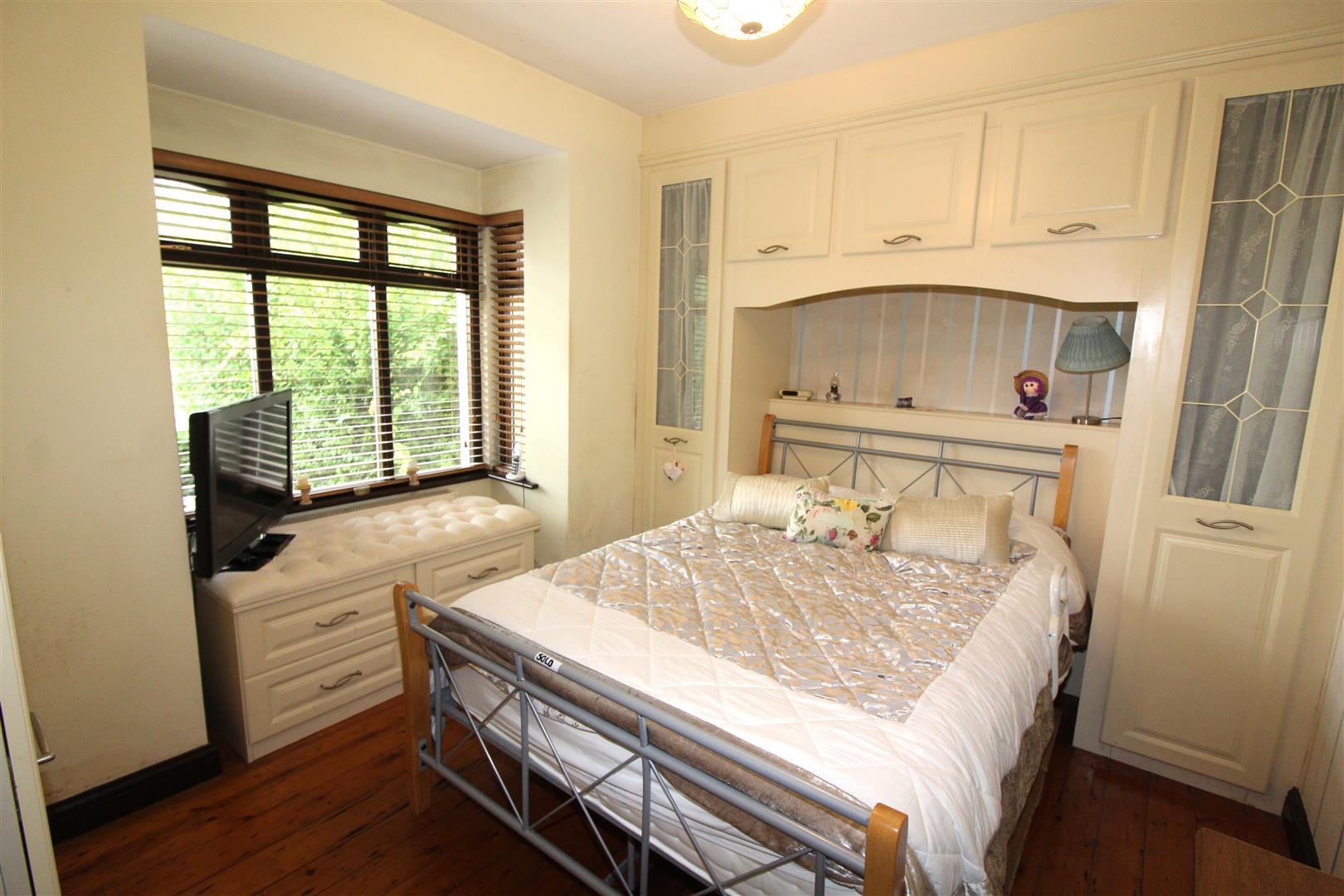 Double glazed square bay window to front aspect, painted finish to walls and ceiling, fitted wardrobes, wooden flooring, radiator.