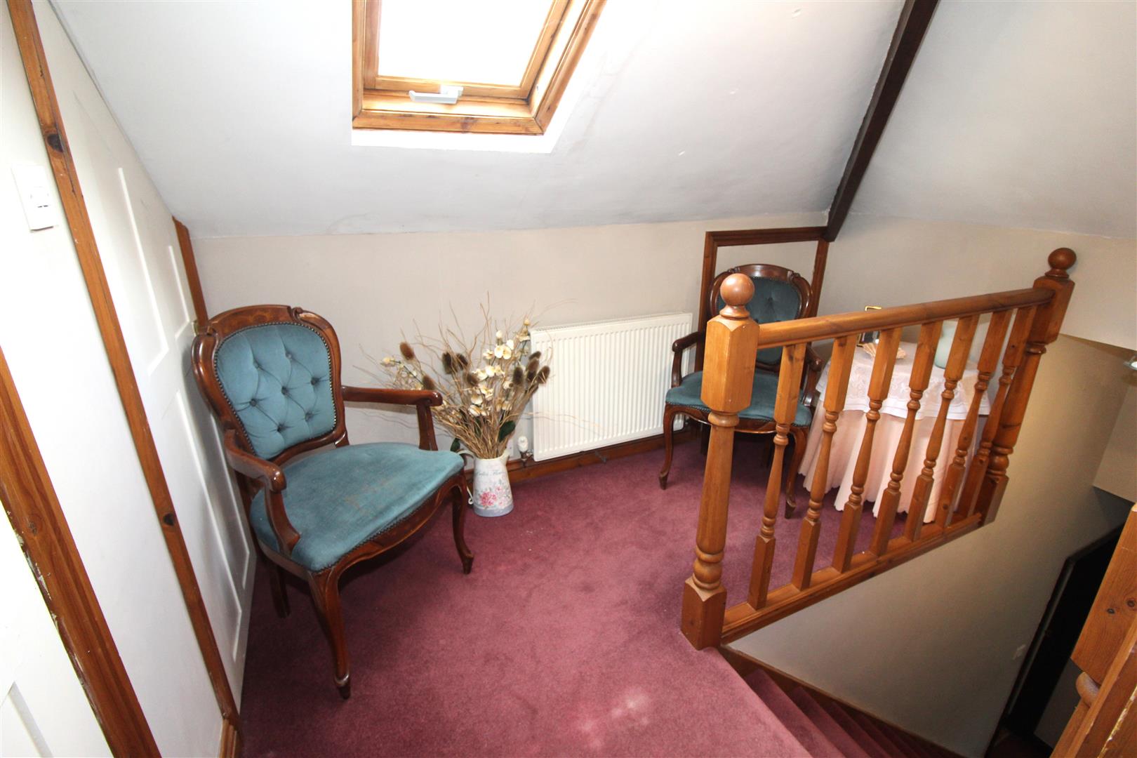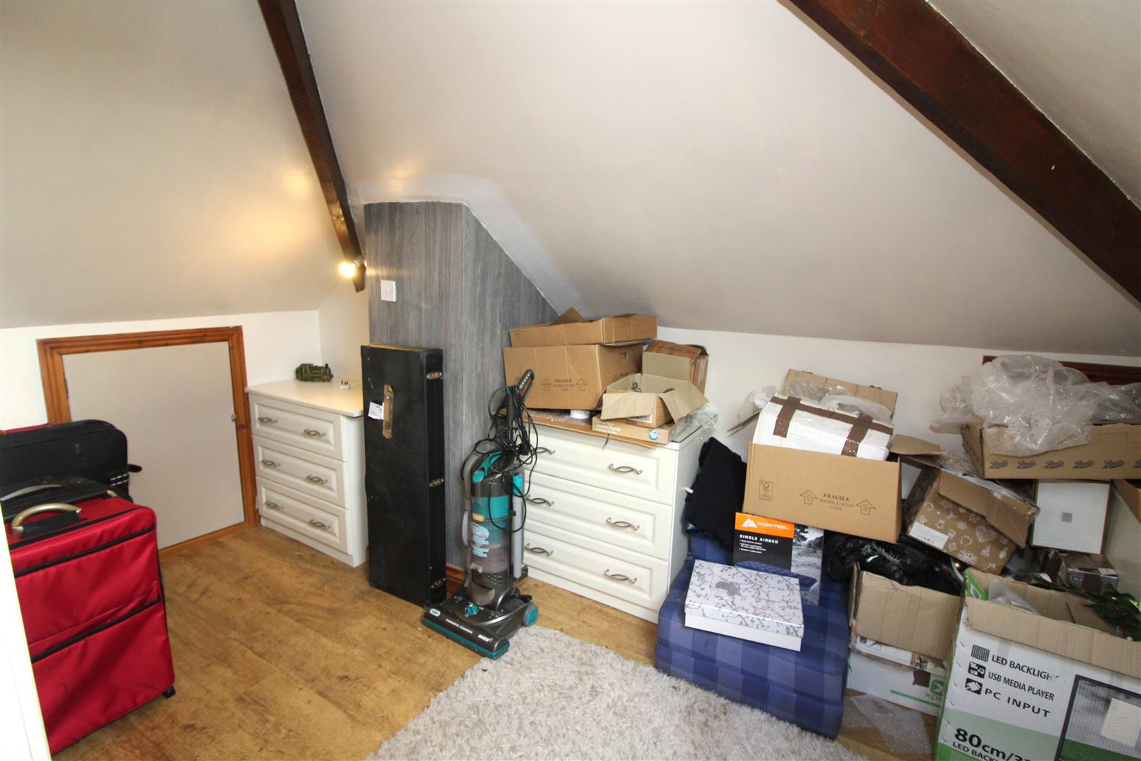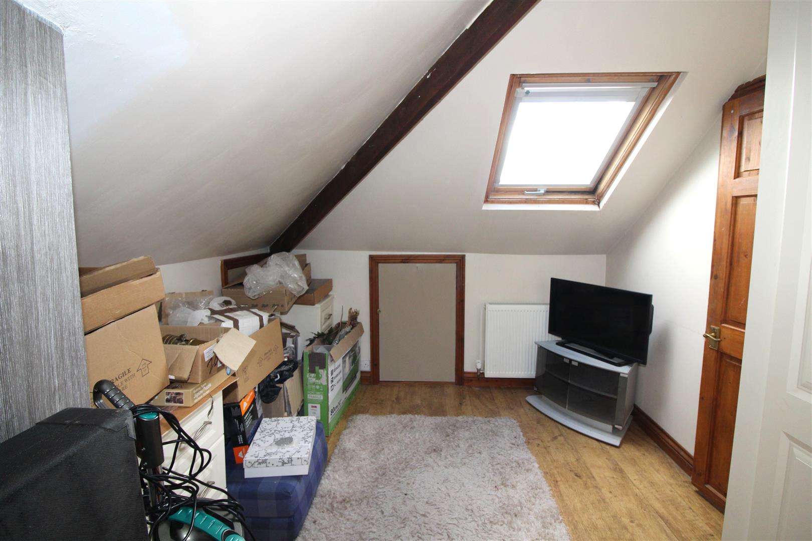 Double glazed sky light, painted finish to sloped ceiling an walls, fitted wardrobes, under eaves storage.