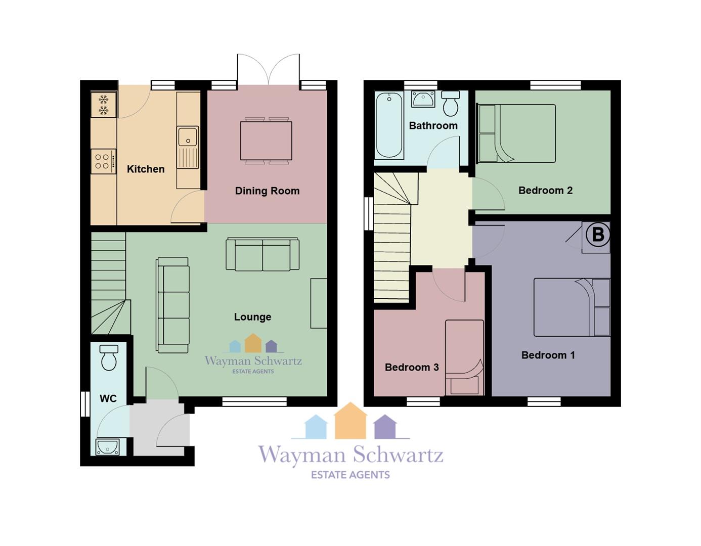 Overlooking a communal green with pedestrian access to the property making it a traffic free zone.