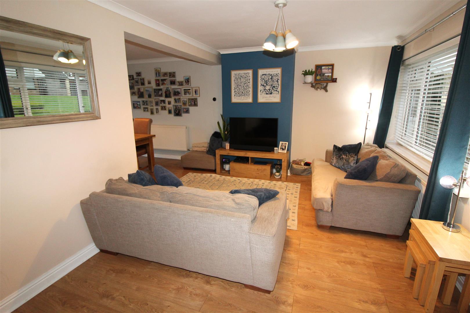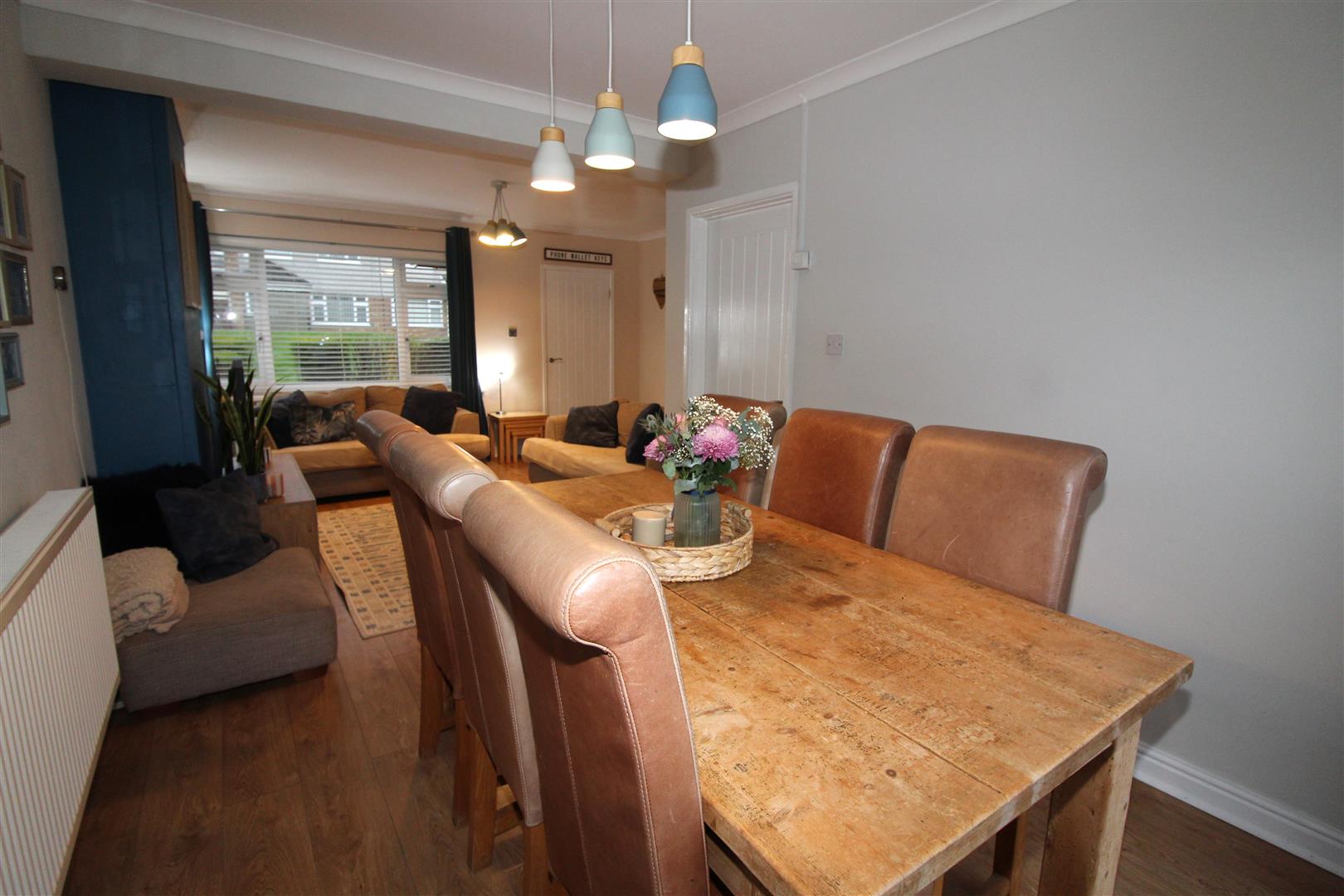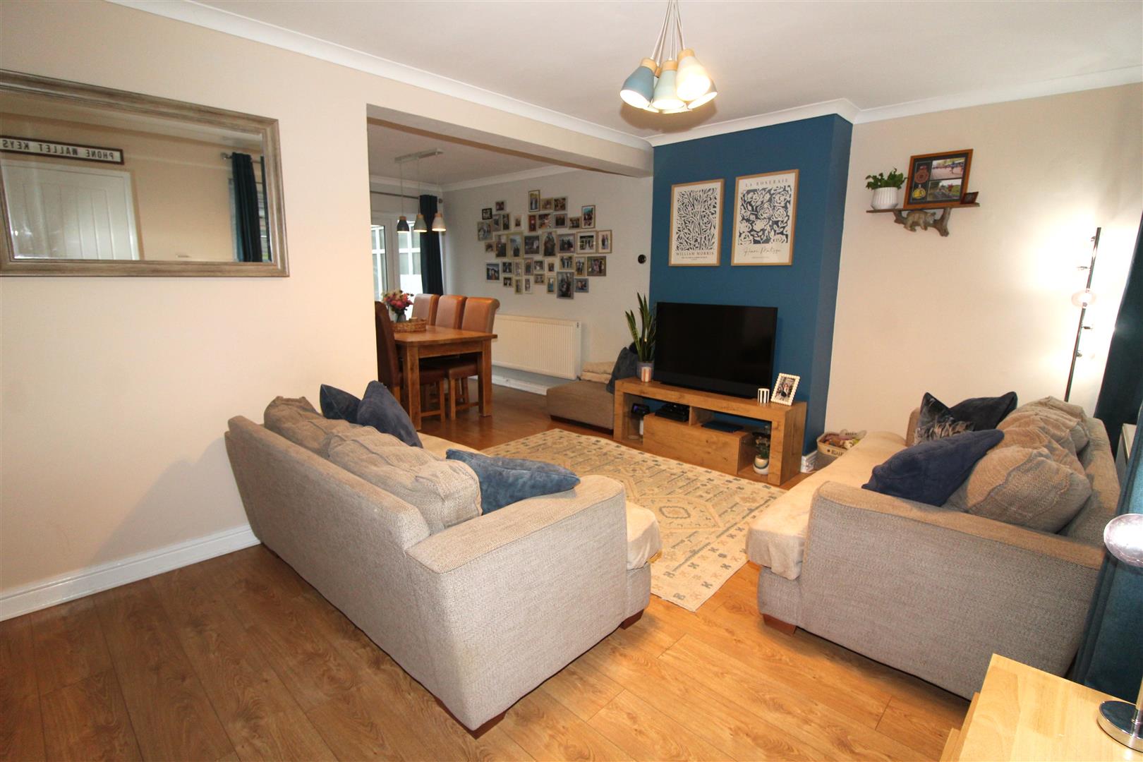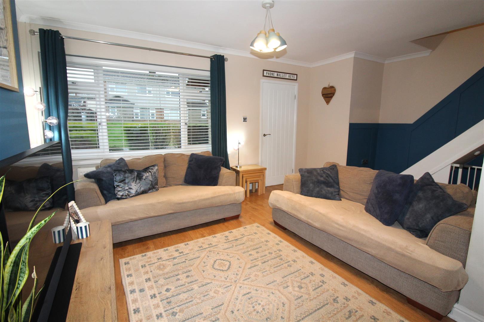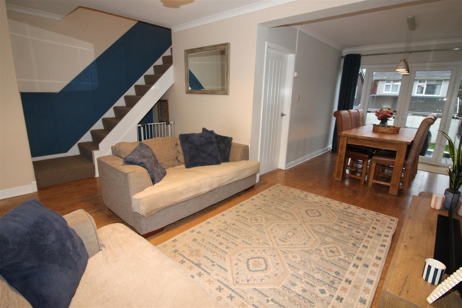 Double glazed window to front aspect, coved and painted finish to walls and ceiling, stairs leading to first floor accommodation, laminated wood flooring, radiator.