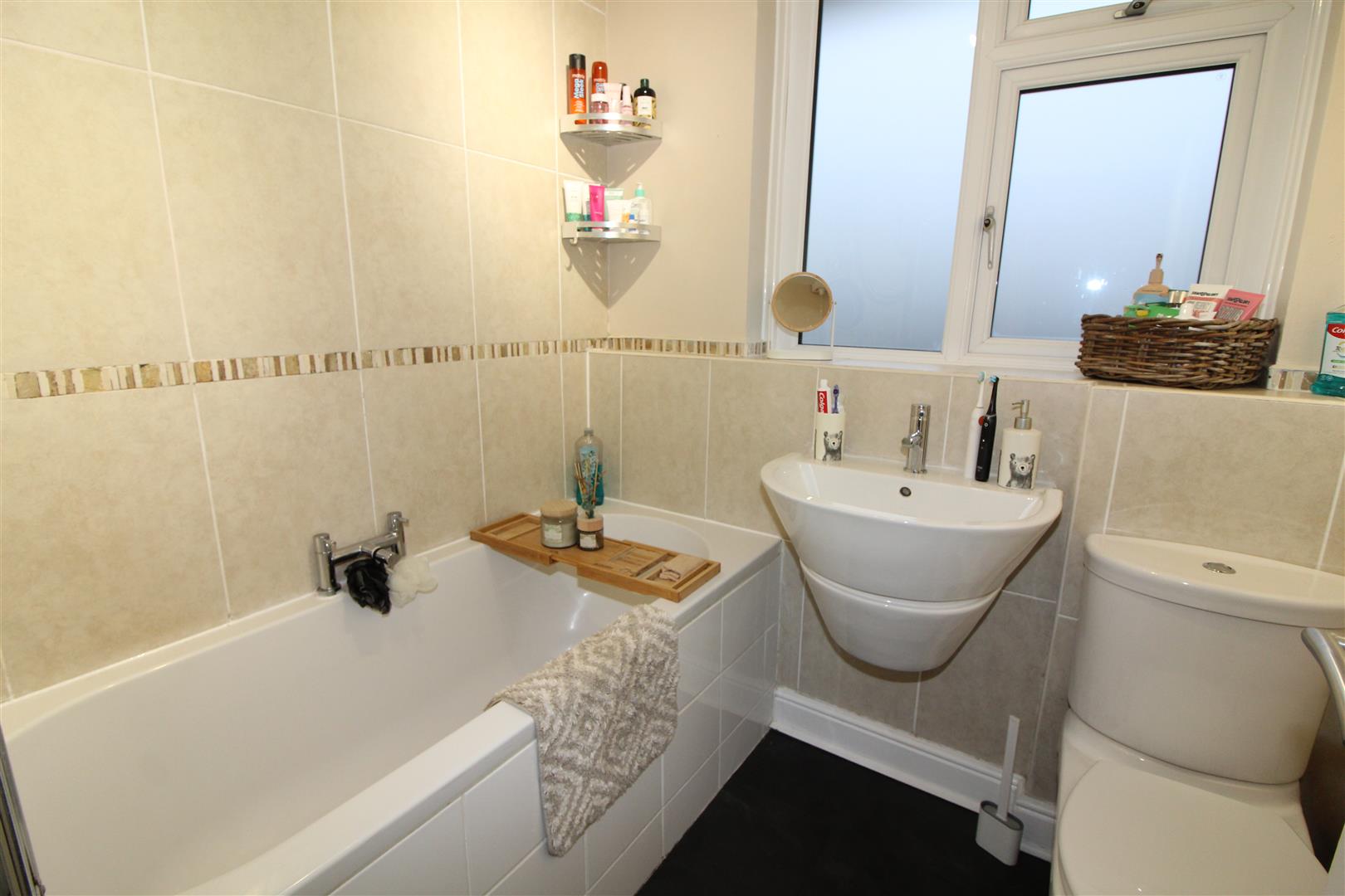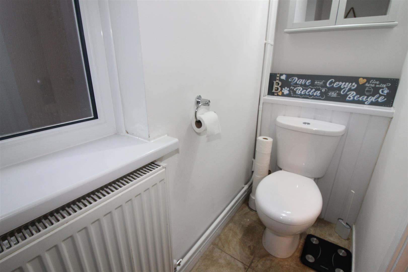 Double glazed window to side aspect with obscured glass, painted finish to walls and ceiling, wash hand basin, low level WC, tiled flooring, radiator.