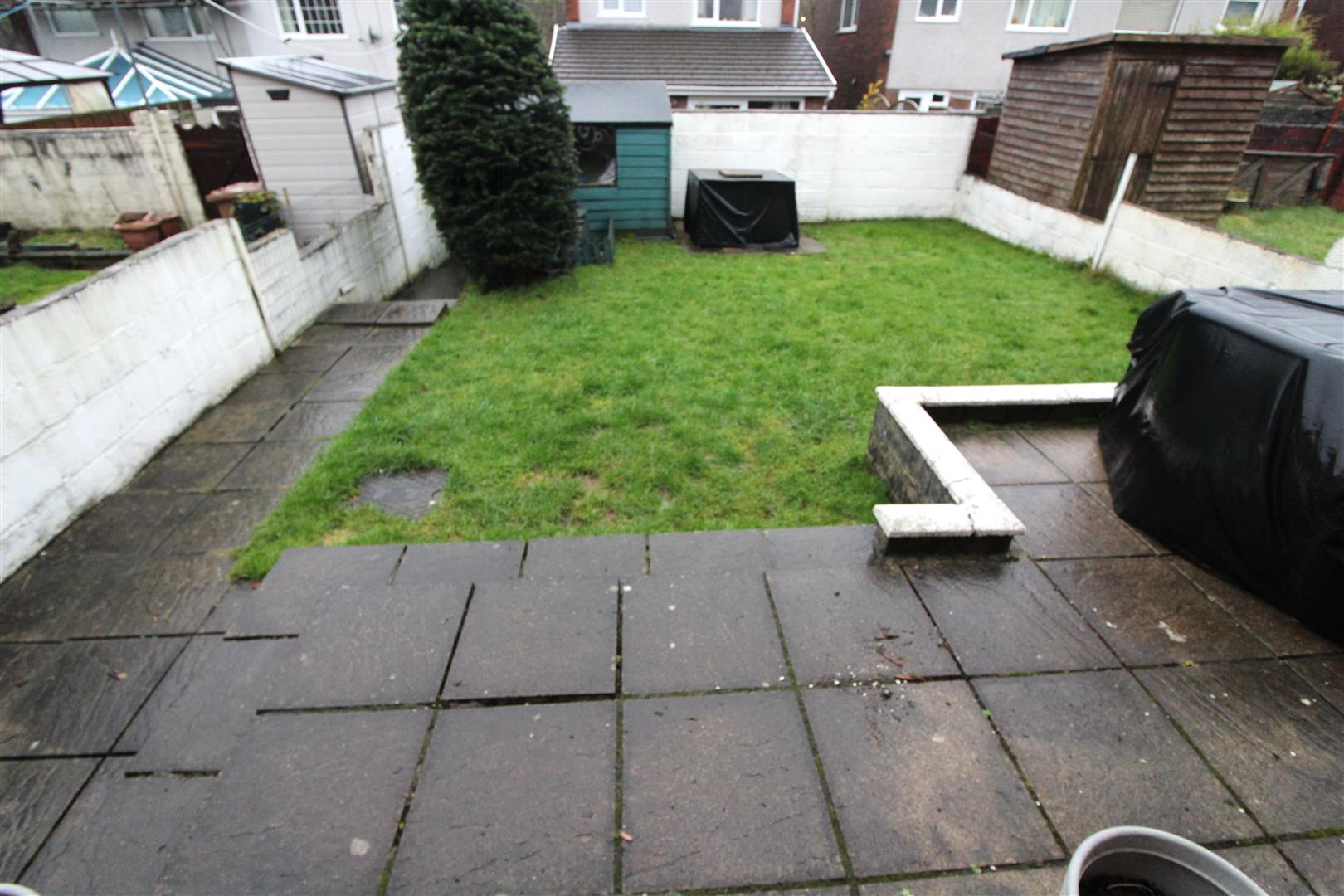 Enclosed with wall boundaries, paved seating area and lawn with gated rear pedestrian access, cold water tap.